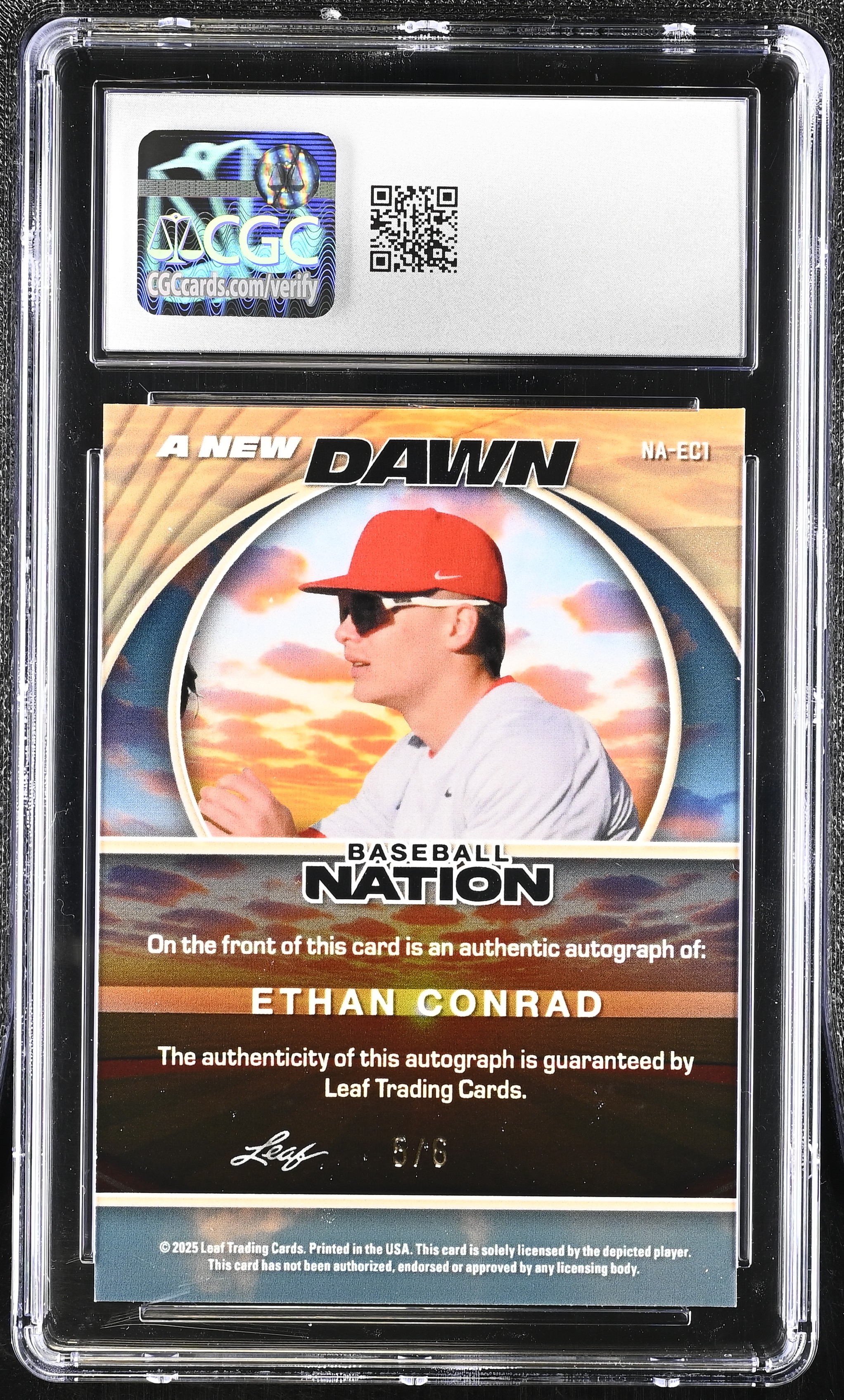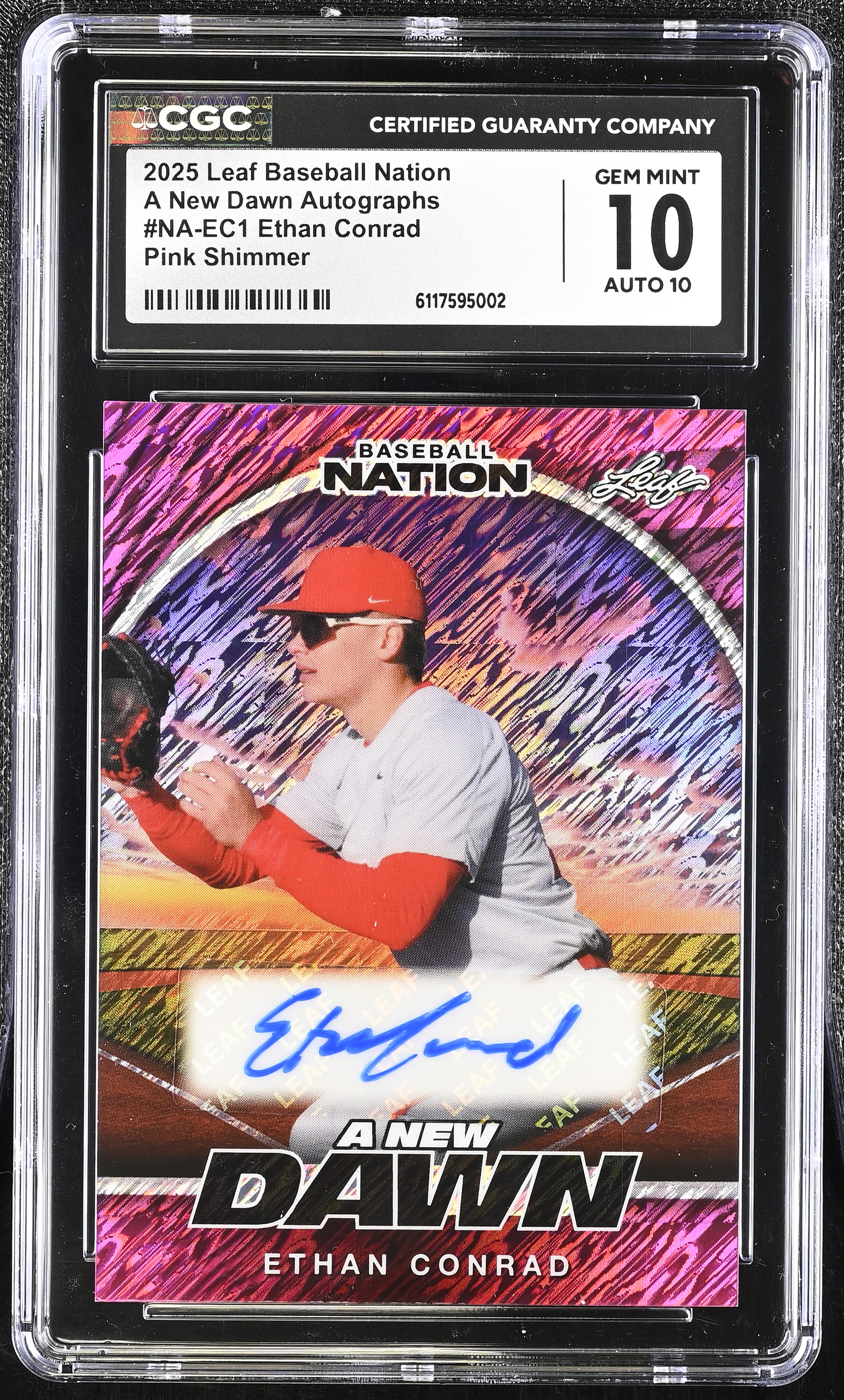 Ethan Conrad 2025 Leaf Baseball Nation A New Dawn Autographs Pink Shimmer #NA-EC1 #5/6 (CGC 10 | Autograph Grade 10)