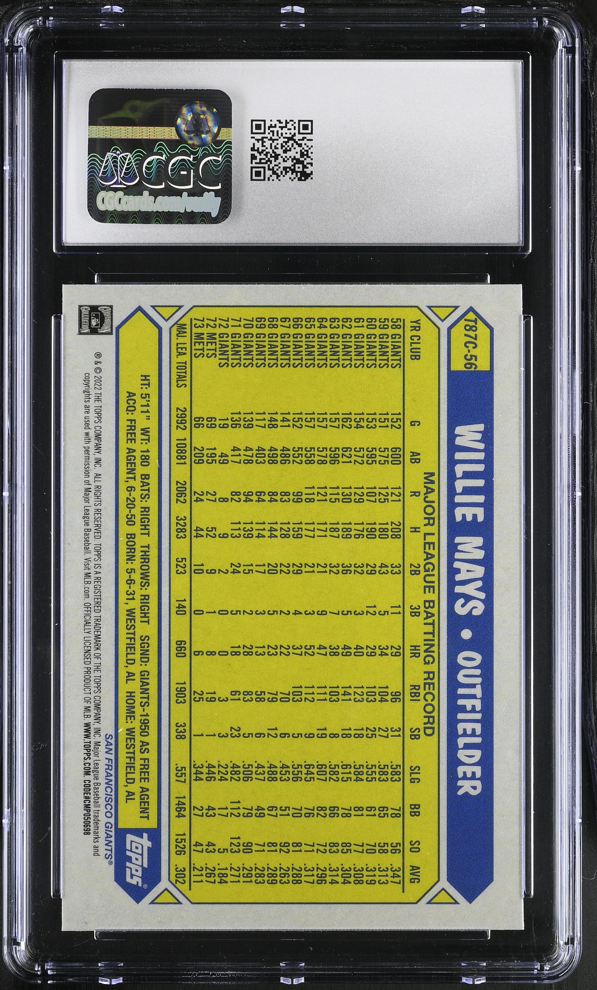 Willie Mays 2022 Topps '87 Silver Pack #T87C-56 (CGC 10)