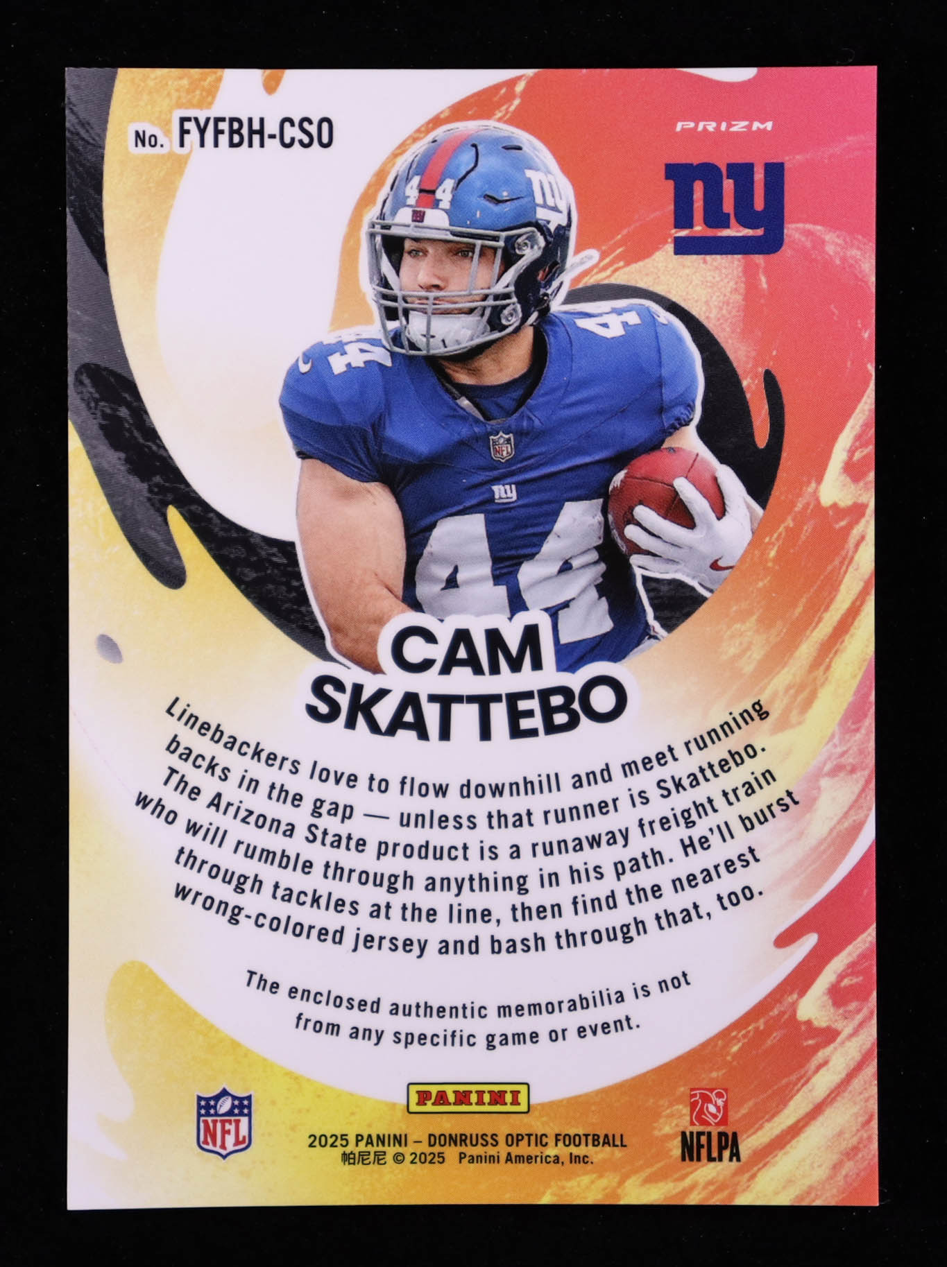 Cam Skattebo 2025 Donruss Optic First Year Fresh Jerseys Blue Hyper #21 RC