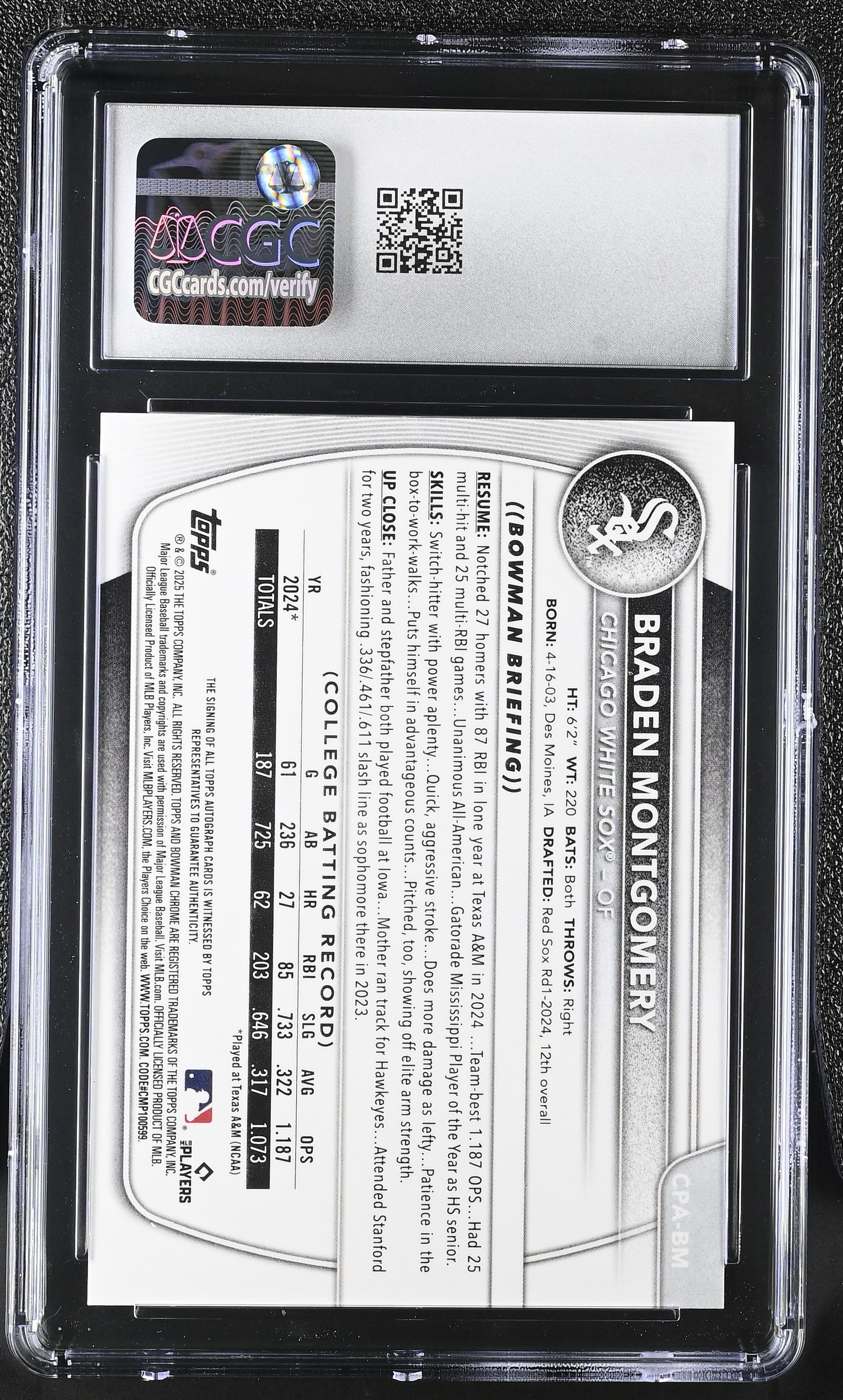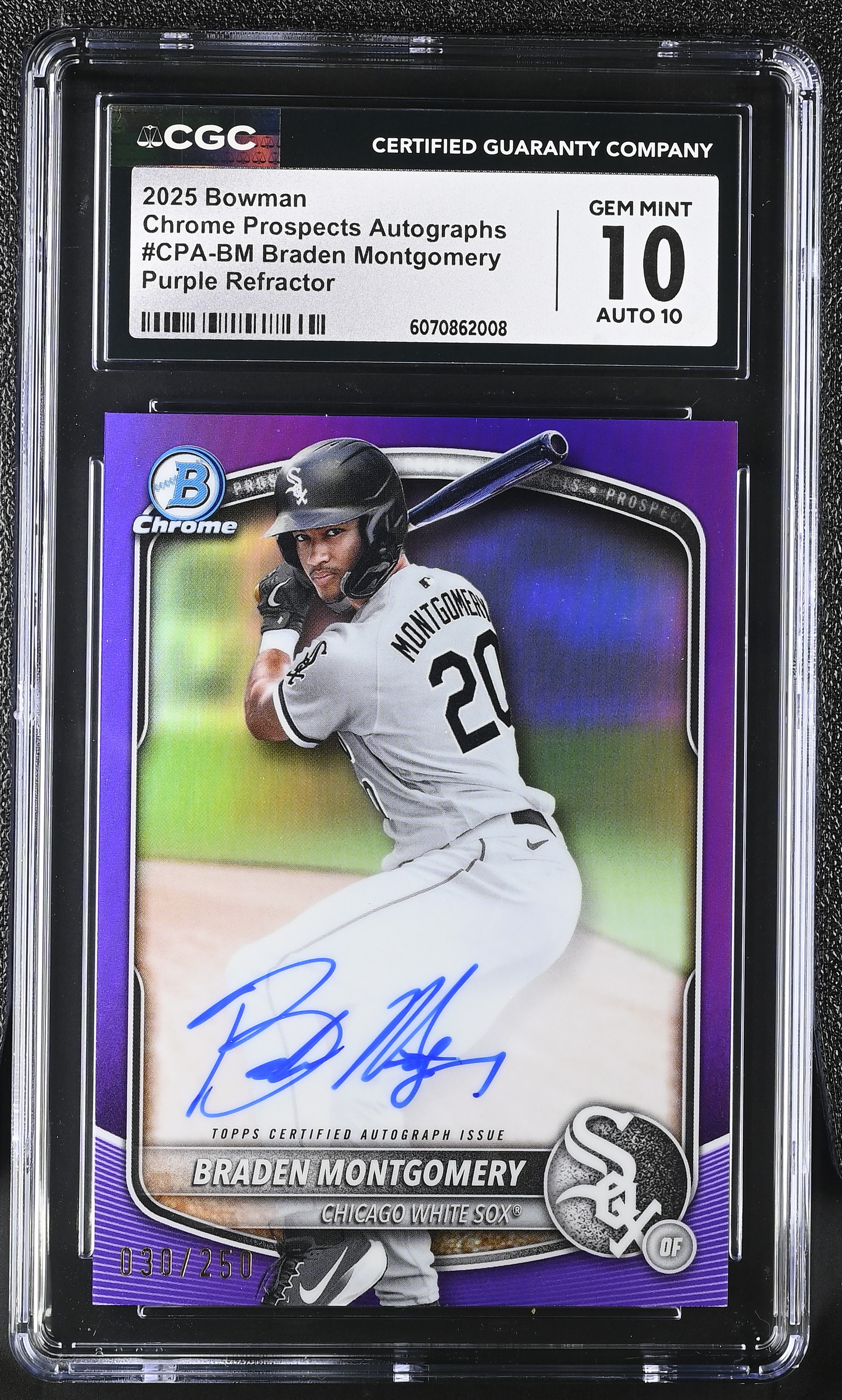 Braden Montgomery 2025 Bowman Chrome Prospects Autographs Purple Refractor #CPA-BM #030/250 (CGC 10 | Autograph Grade 10)