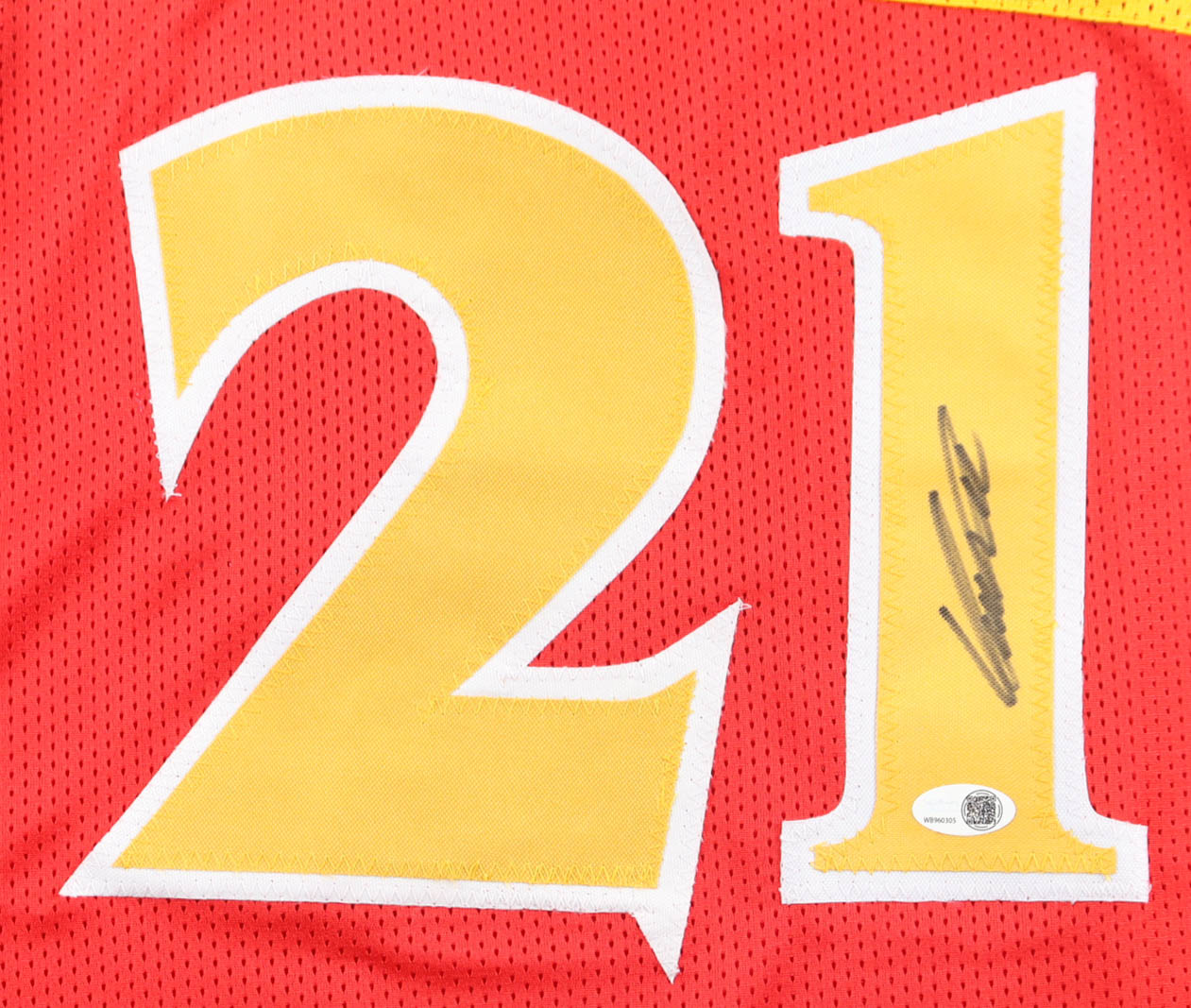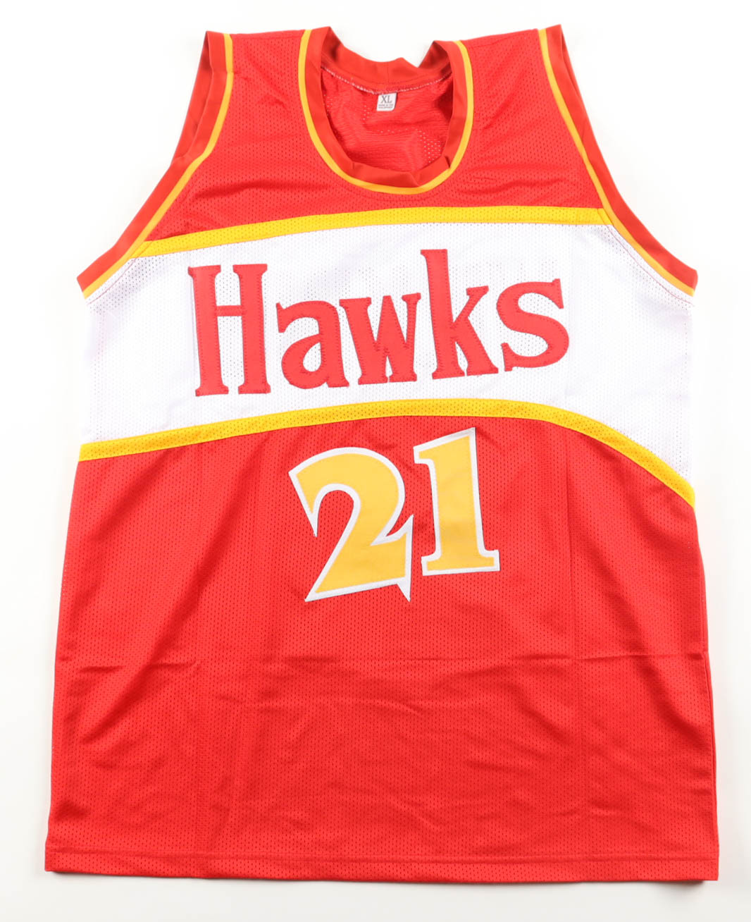 Custom jersey with everything sewn on, size XL. Hand-signed by Dominique Wilkins.