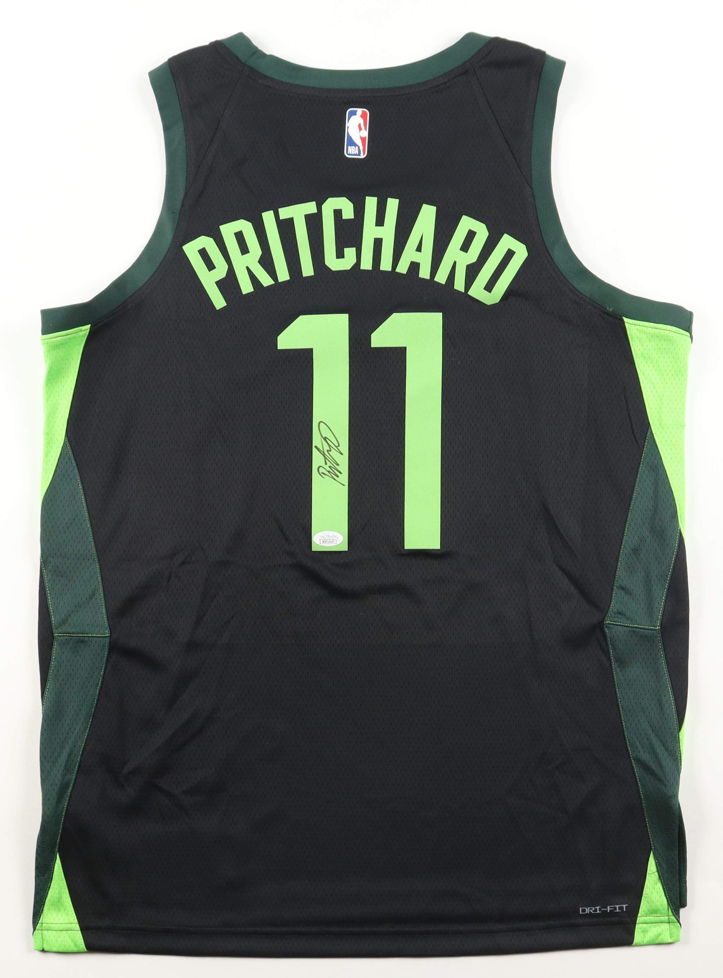 Nike authentic jersey with everything pressed on, size 48. Hand-signed by Payton Pritchard (Boston Celtics).