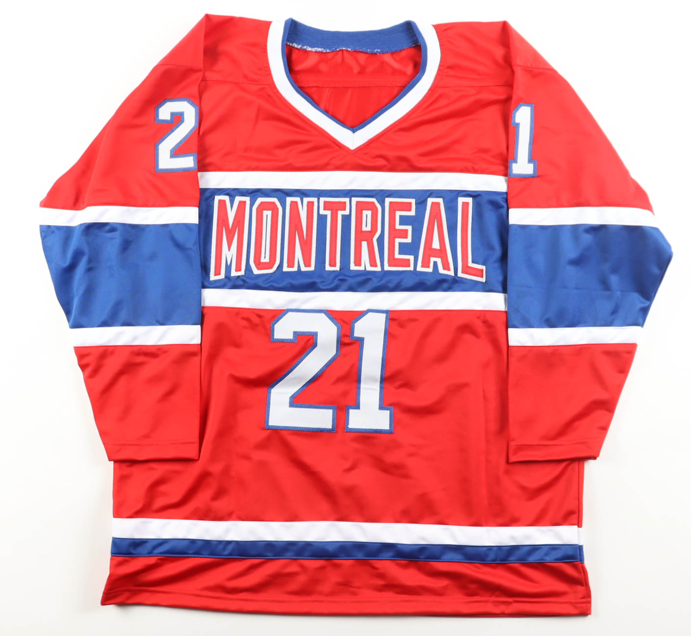 Custom jersey with everything sewn on, size XL. Hand-signed and inscribed by Guy Carbonneau (HOF).