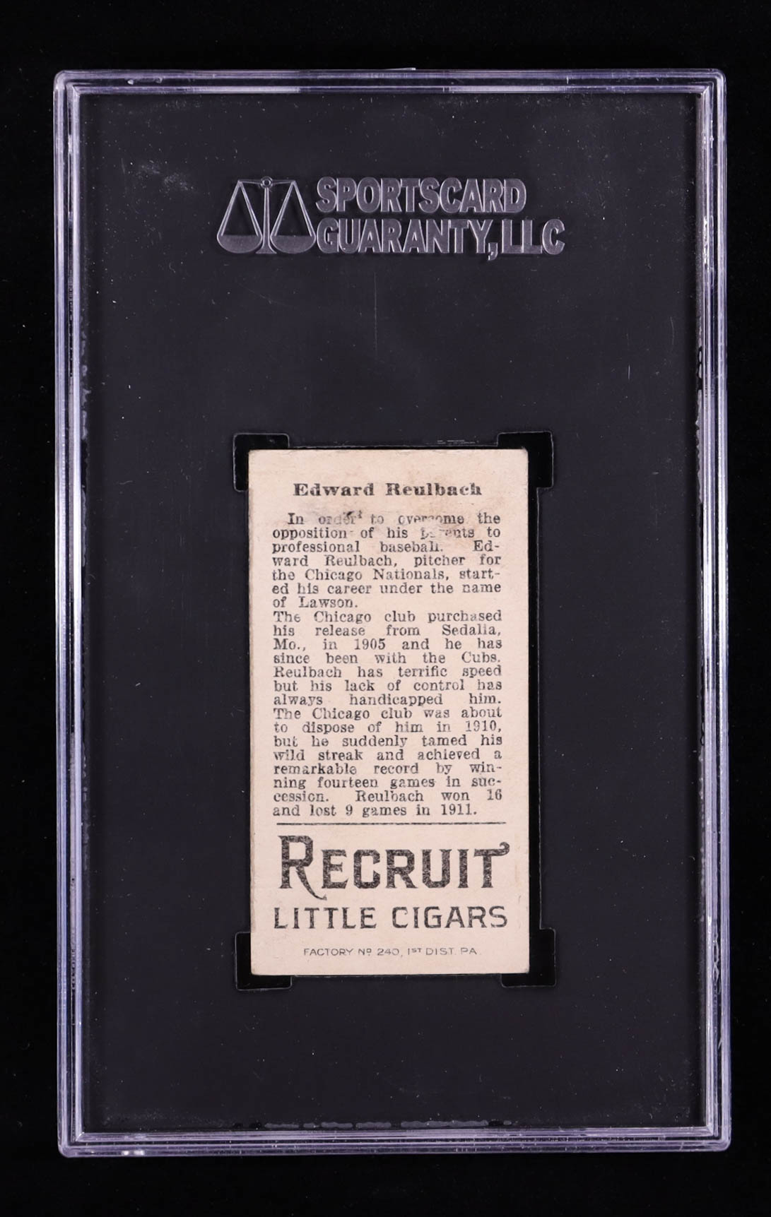Ed Reulbach 1912 T207 Brown Background #156 (SGC 3)