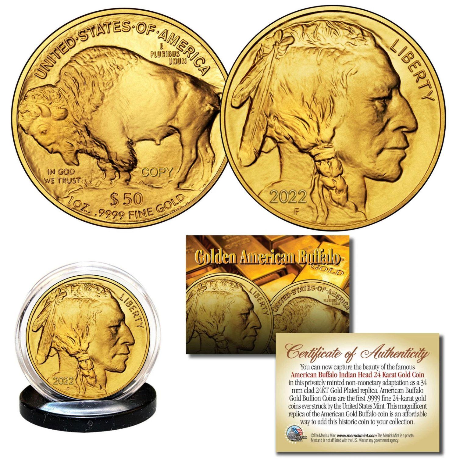 2022 24K Gold Plated $50 American Gold Buffalo Indian Head Tribute Coin