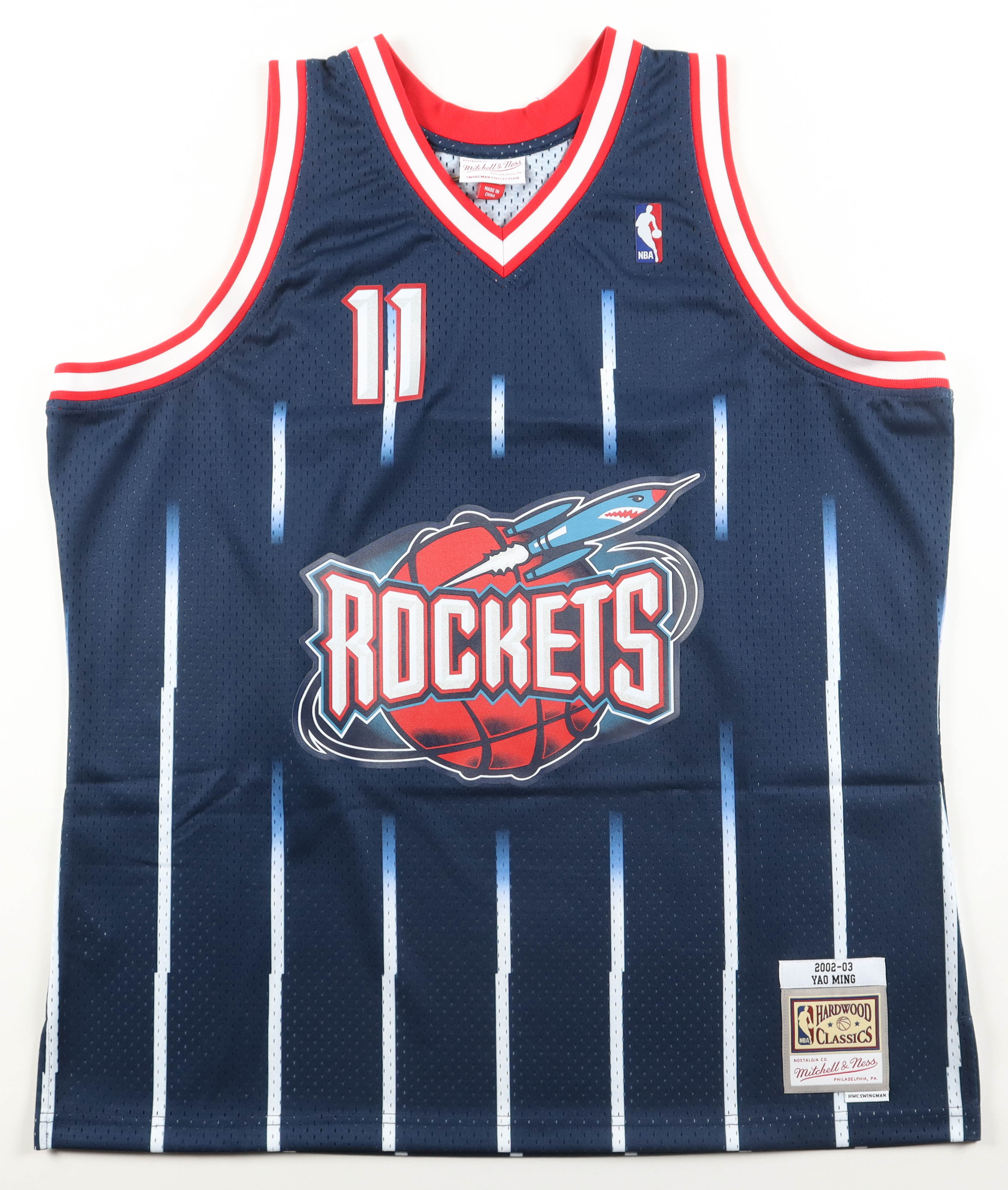 Mitchell & Ness authentic jersey with everything pressed on, size 2XL. Hand-signed by Yao Ming (Houston Rockets, HOF).
