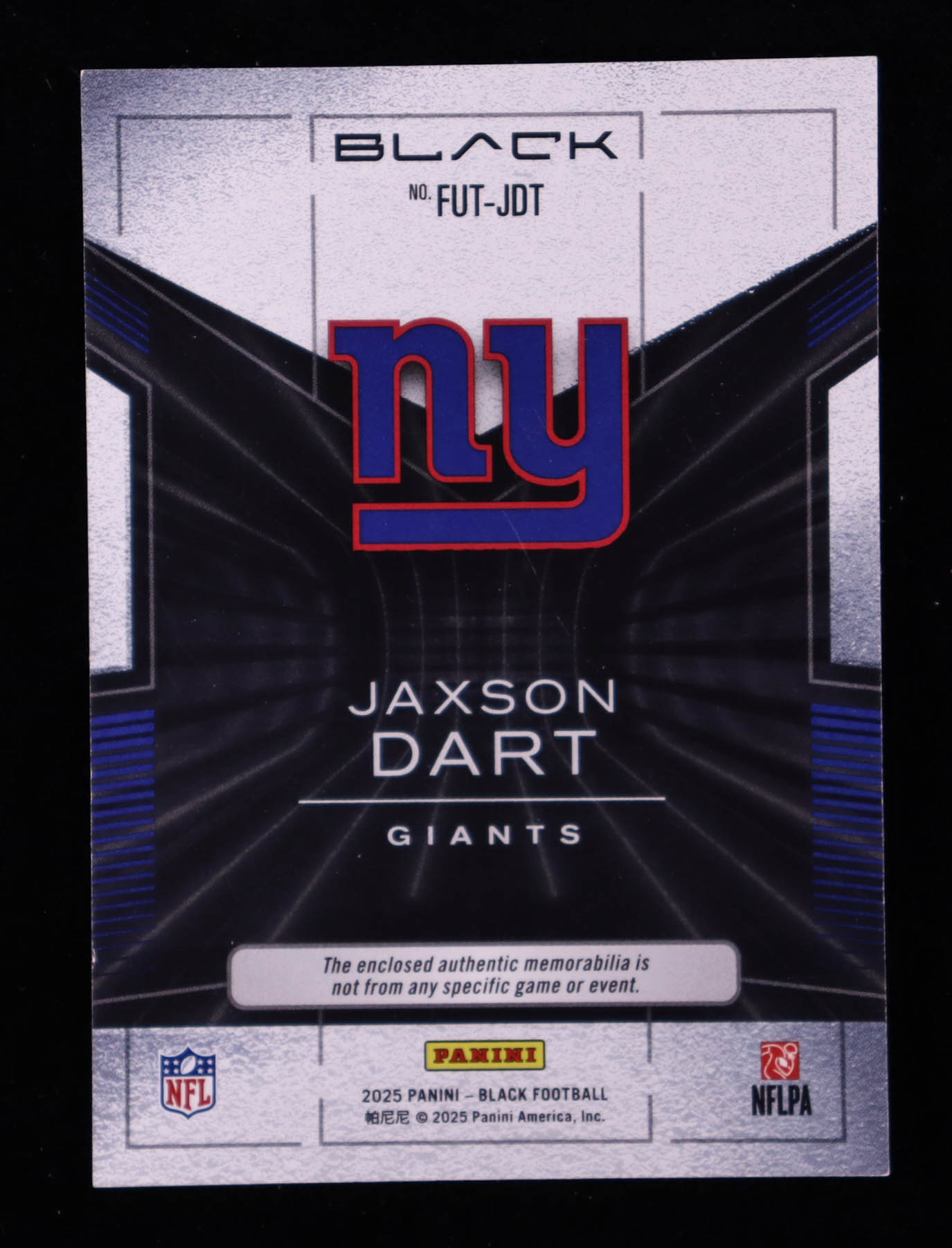 Jaxson Dart 2025 Panini Black Futuristic Jerseys #22 RC #195/199