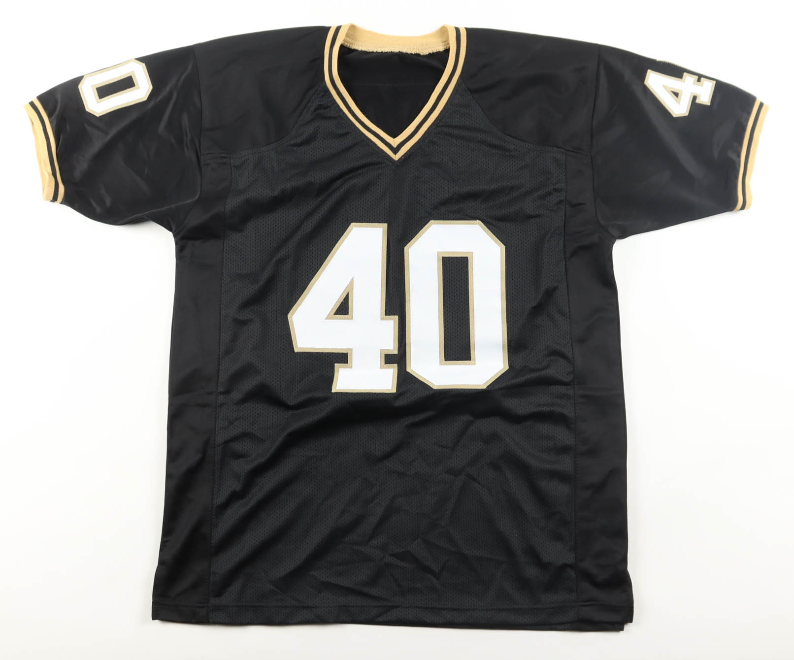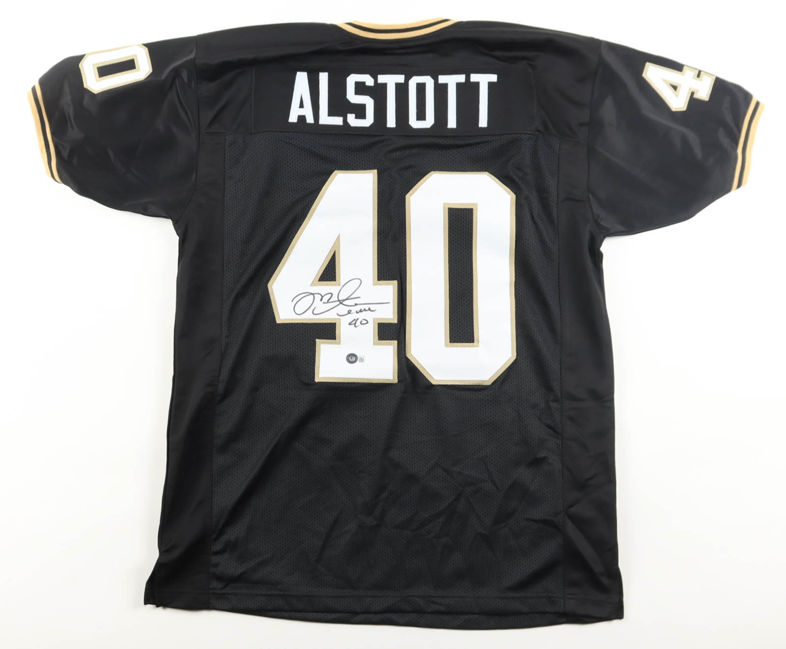 Custom jersey with everything sewn on, size XL. Hand-signed by Mike Alstott.
