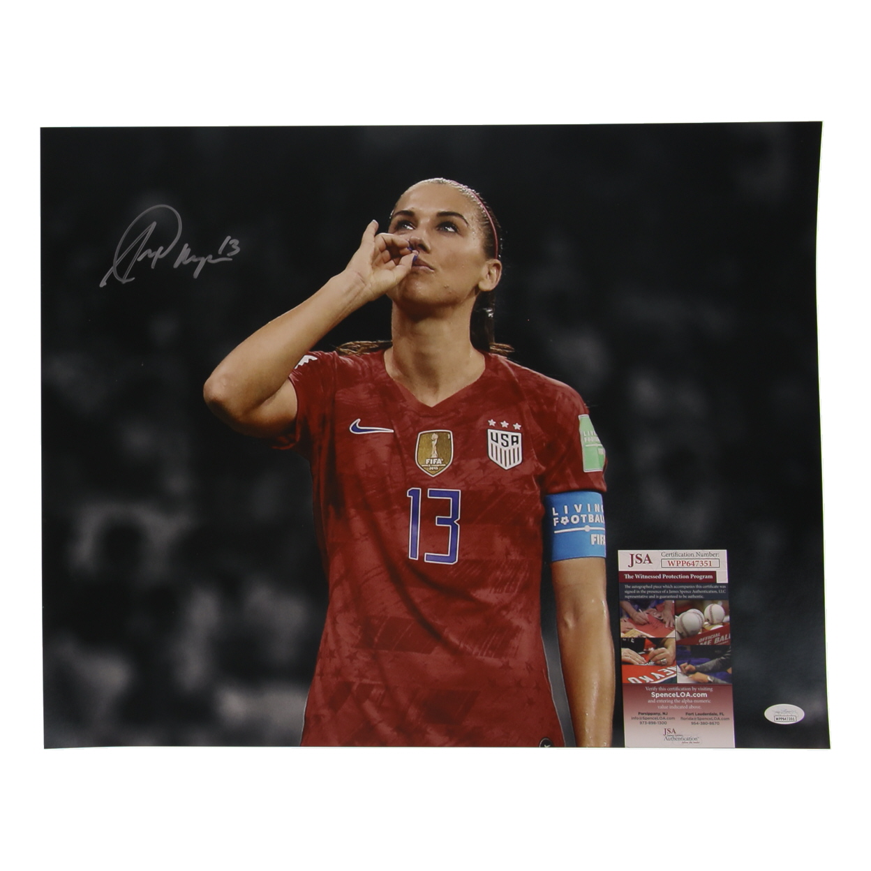 Photo measures 16" x 20" in size and has been hand-signed by Alex Morgan.