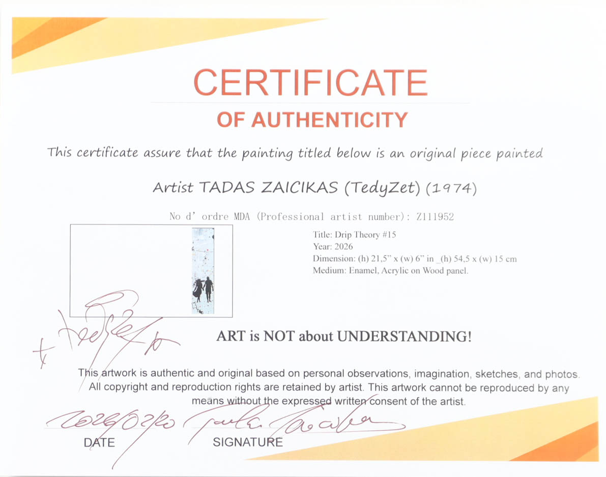 Tadas Zaicikas (TedyZet) "Drip Theory #15" Original Painting on Wood Panel (Zaicikas)