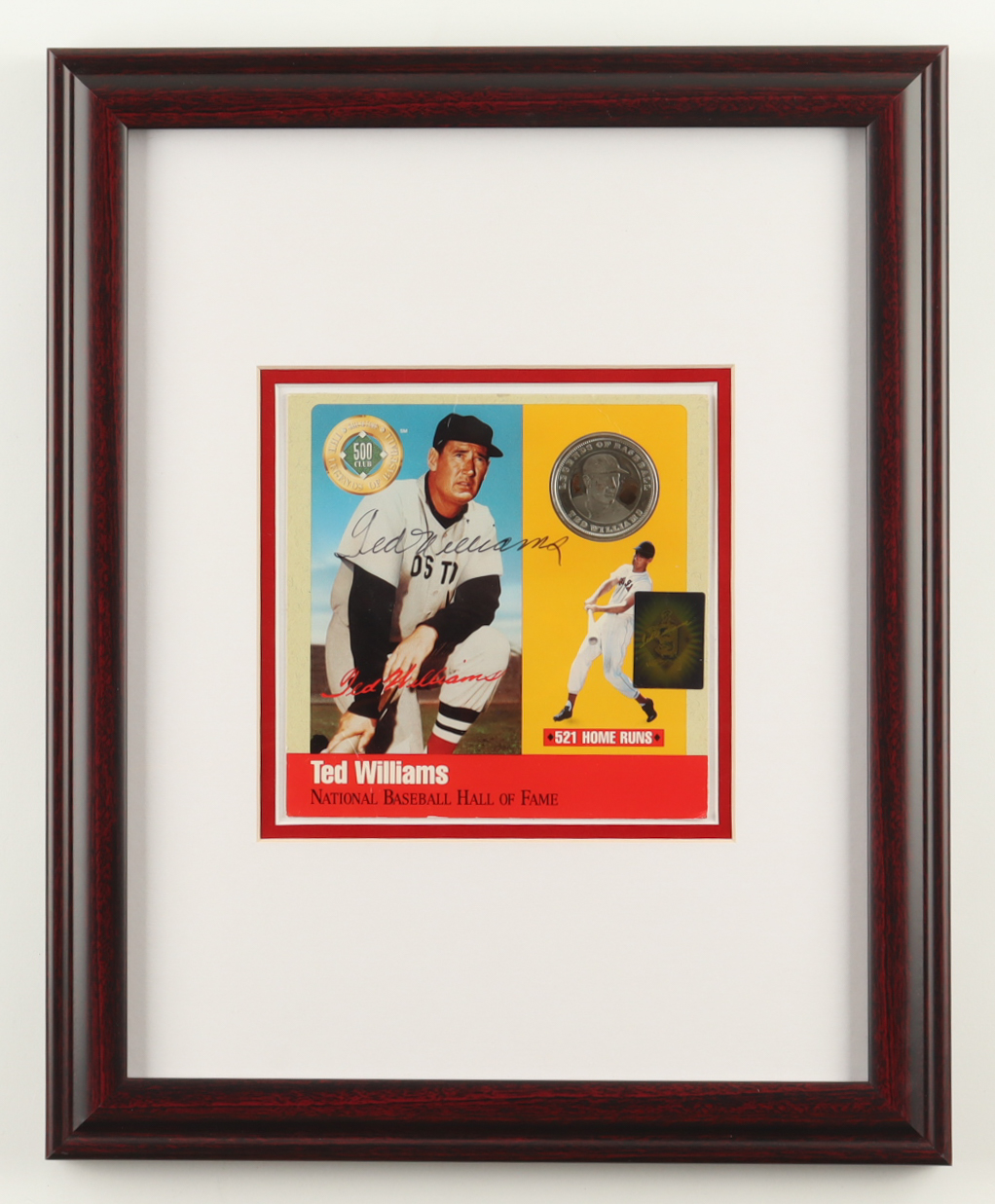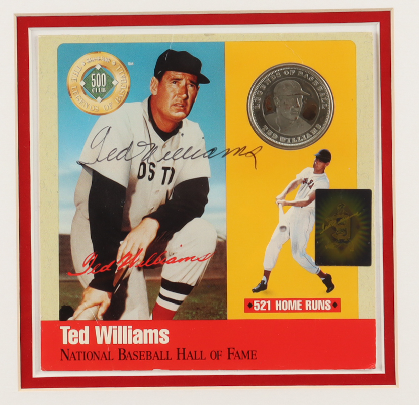 Ted Williams Signed Custom Framed Hall of Fame Card with 1oz Pure Silver Coin (Williams)