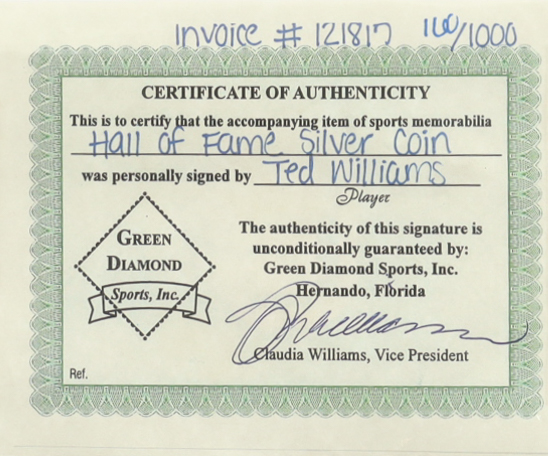 The autograph(s) includes an official Ted Williams pro player hologram for authenticity purposes.