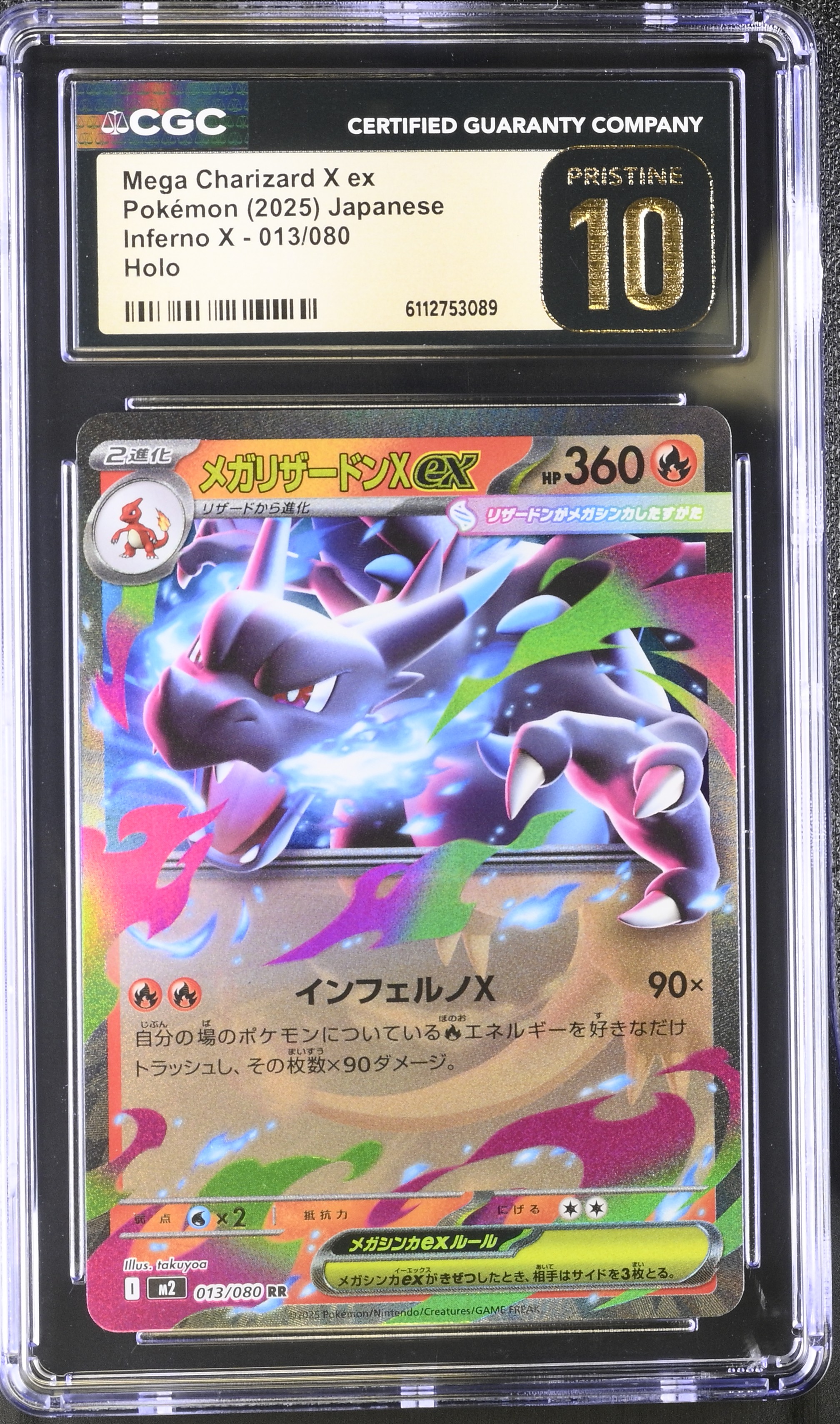 Mega Charizard ex 2025 Pokemon Inferno X Japanese #13 Holo (CGC 10 | Pristine Black Label)