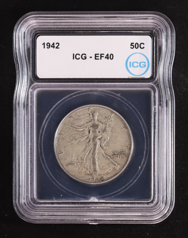 1942 Walking Liberty Silver 50C Half Dollar (ICG EF40)