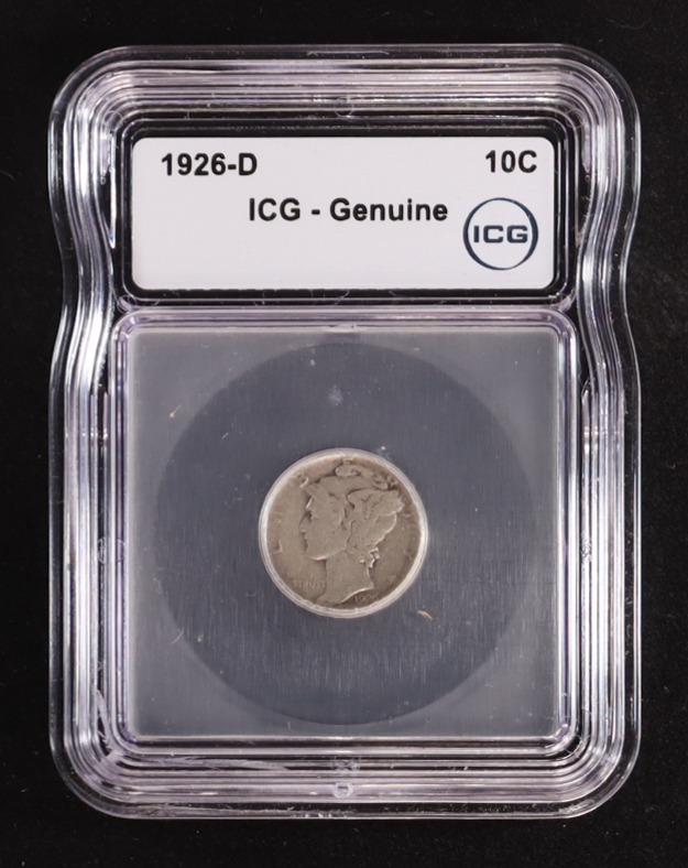 1926-D Mercury Silver 10C Dime, Rotated Reverse (ICG Genuine)