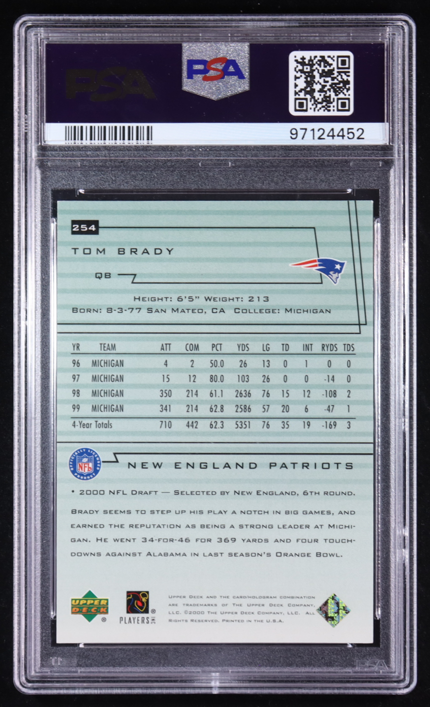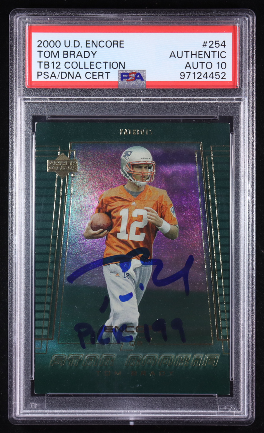 Tom Brady Signed 2000 Upper Deck Encore #254 RC Inscribed "Pick 199" (PSA | Auto 10)
