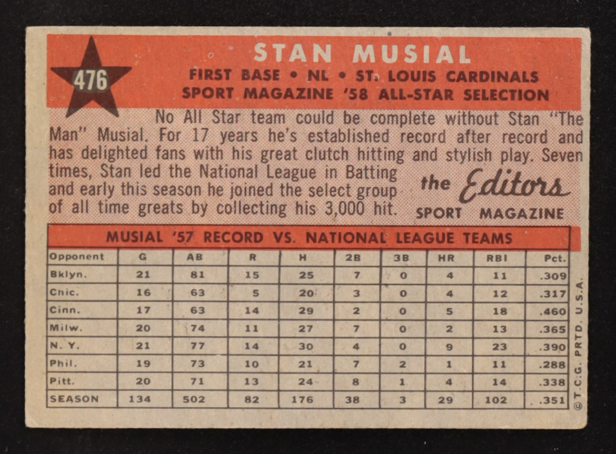 Stan Musial 1958 Topps #476 AS