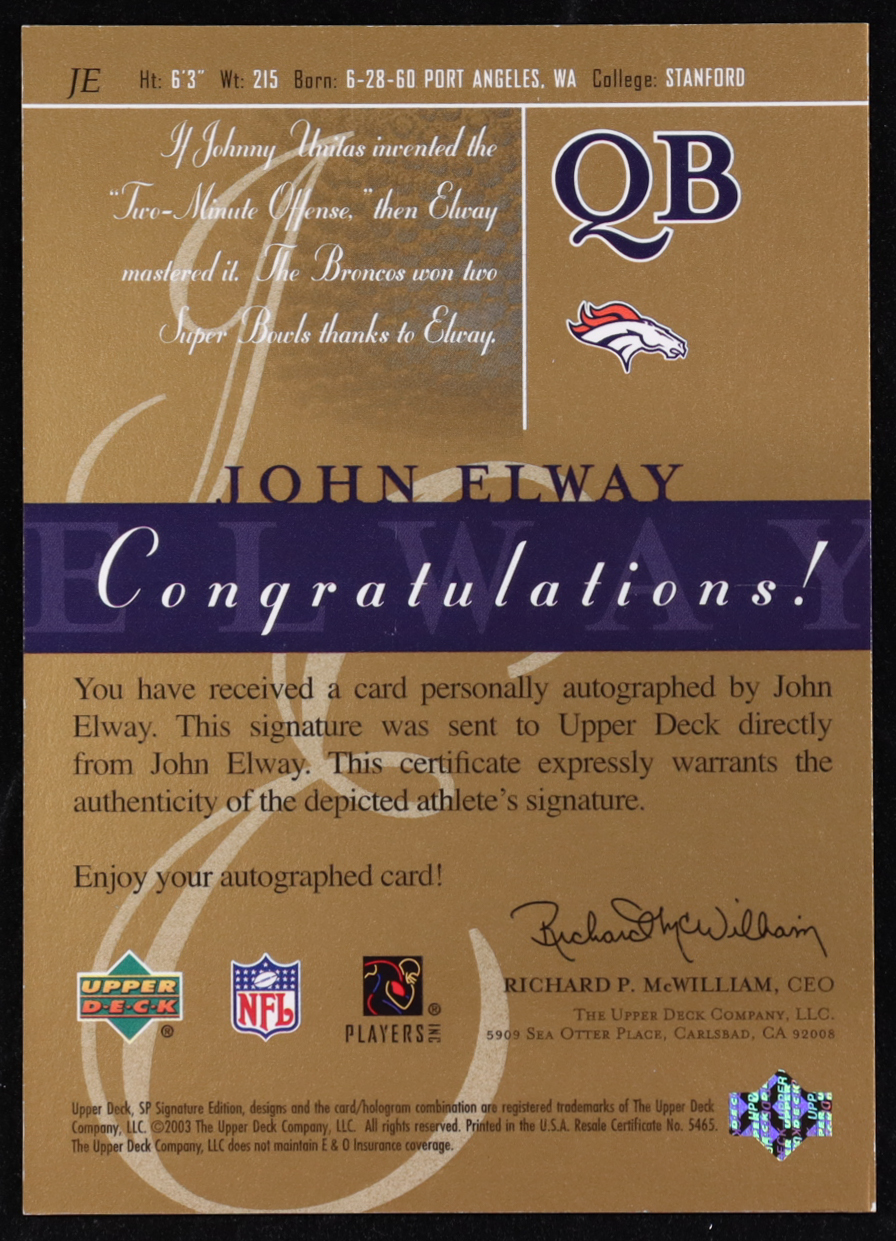 John Elway 2003 SP Signature Autographs Red Ink #JE #015/100