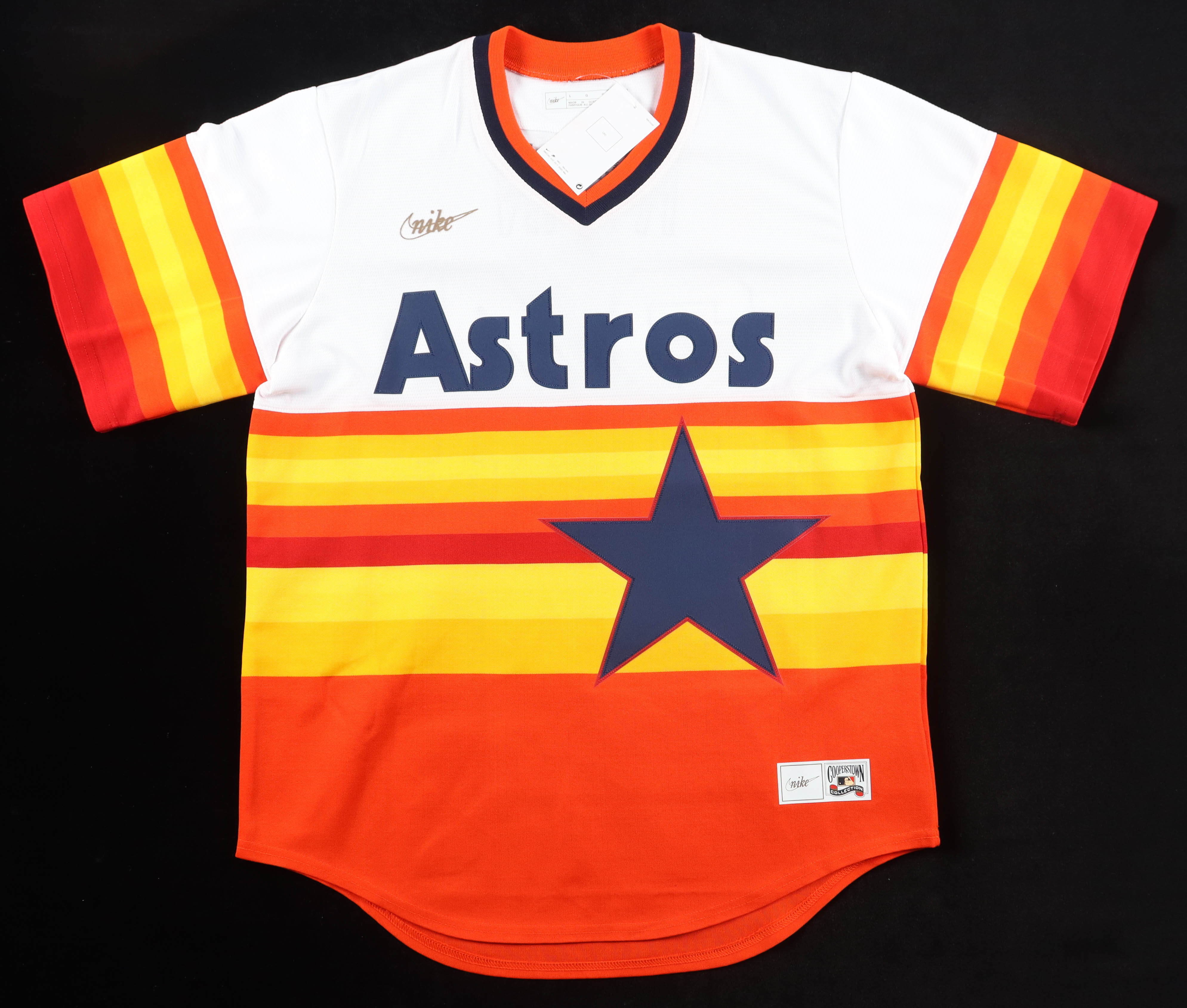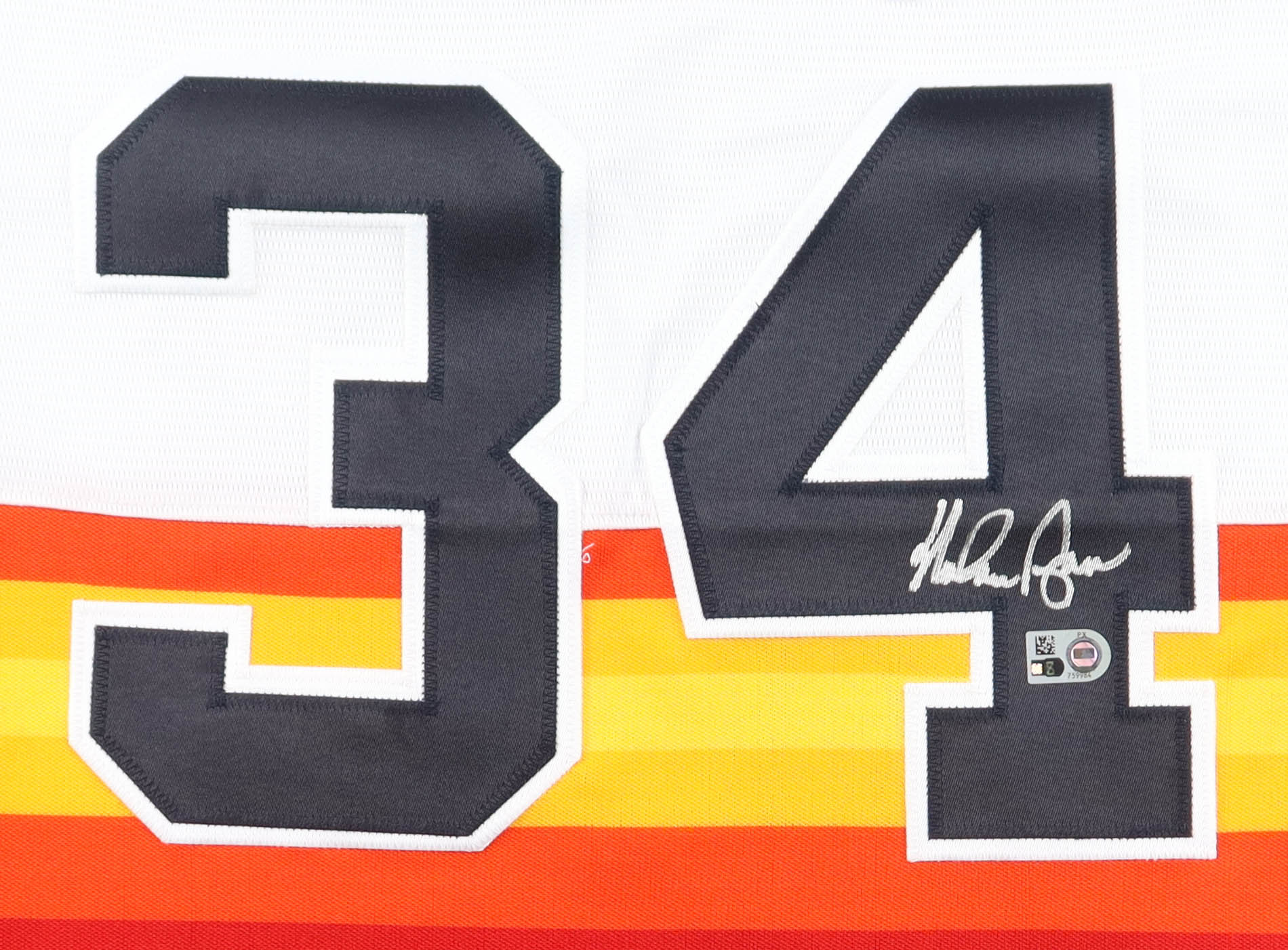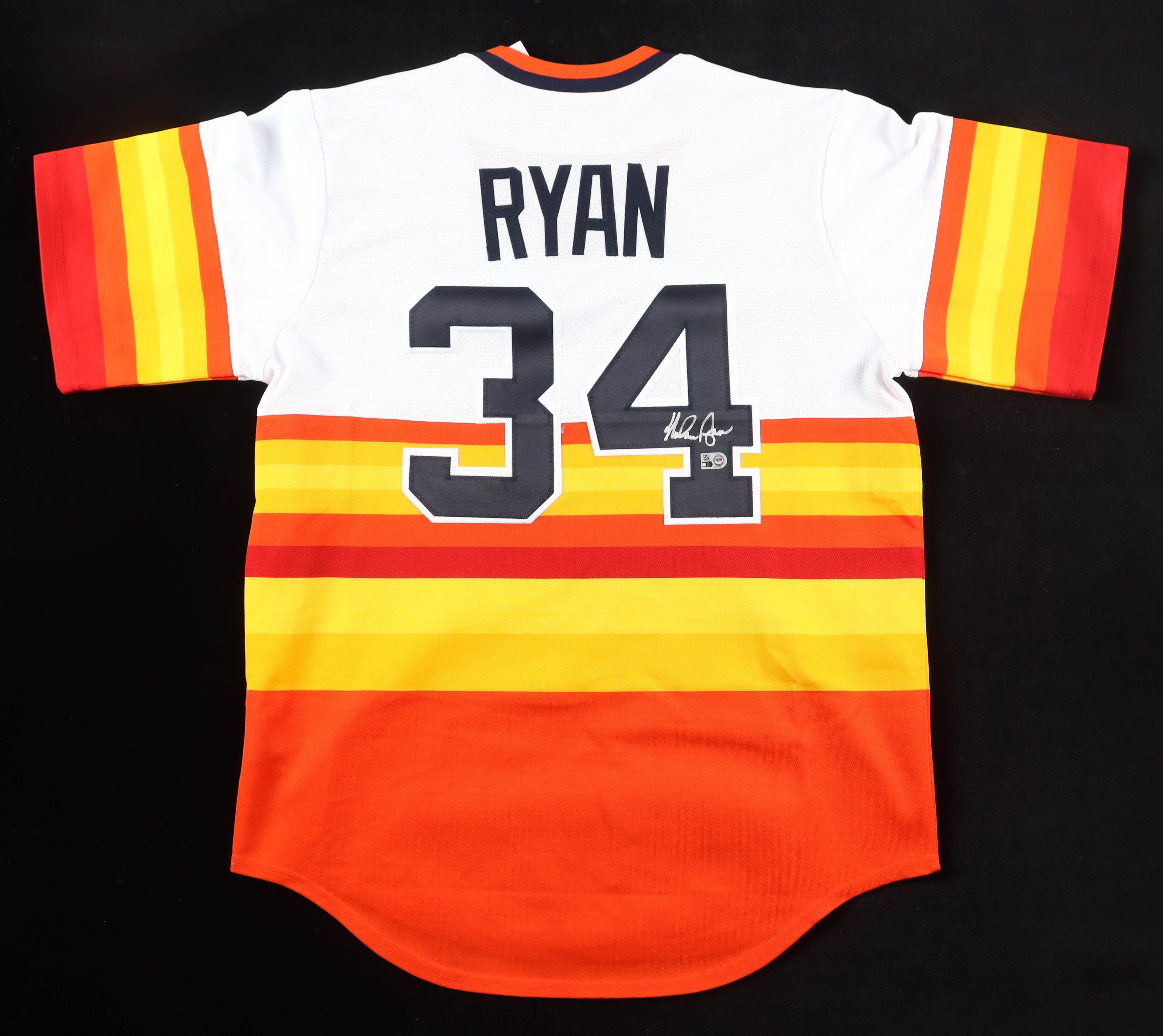 Nike authentic jersey with everything sewn on, size L. Hand-signed by Nolan Ryan (Houston Astros, HOF).