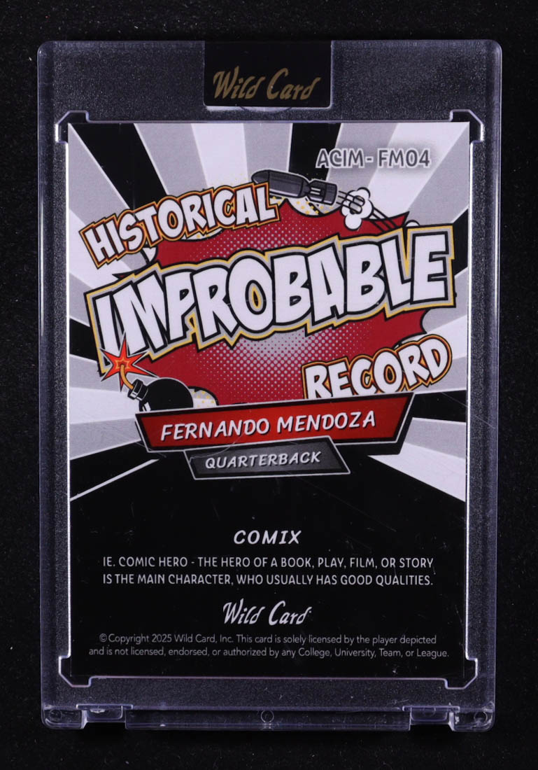 Fernando Mendoza 2025 Wild Card Comix Improbable Record Black and White Silver Foil #ACIM-FM04 RC #4/4