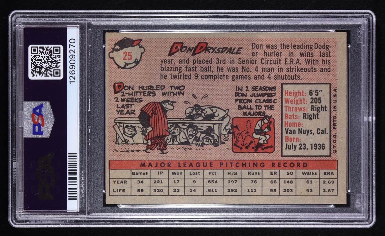 Don Drysdale 1958 Topps #25 (PSA 4)