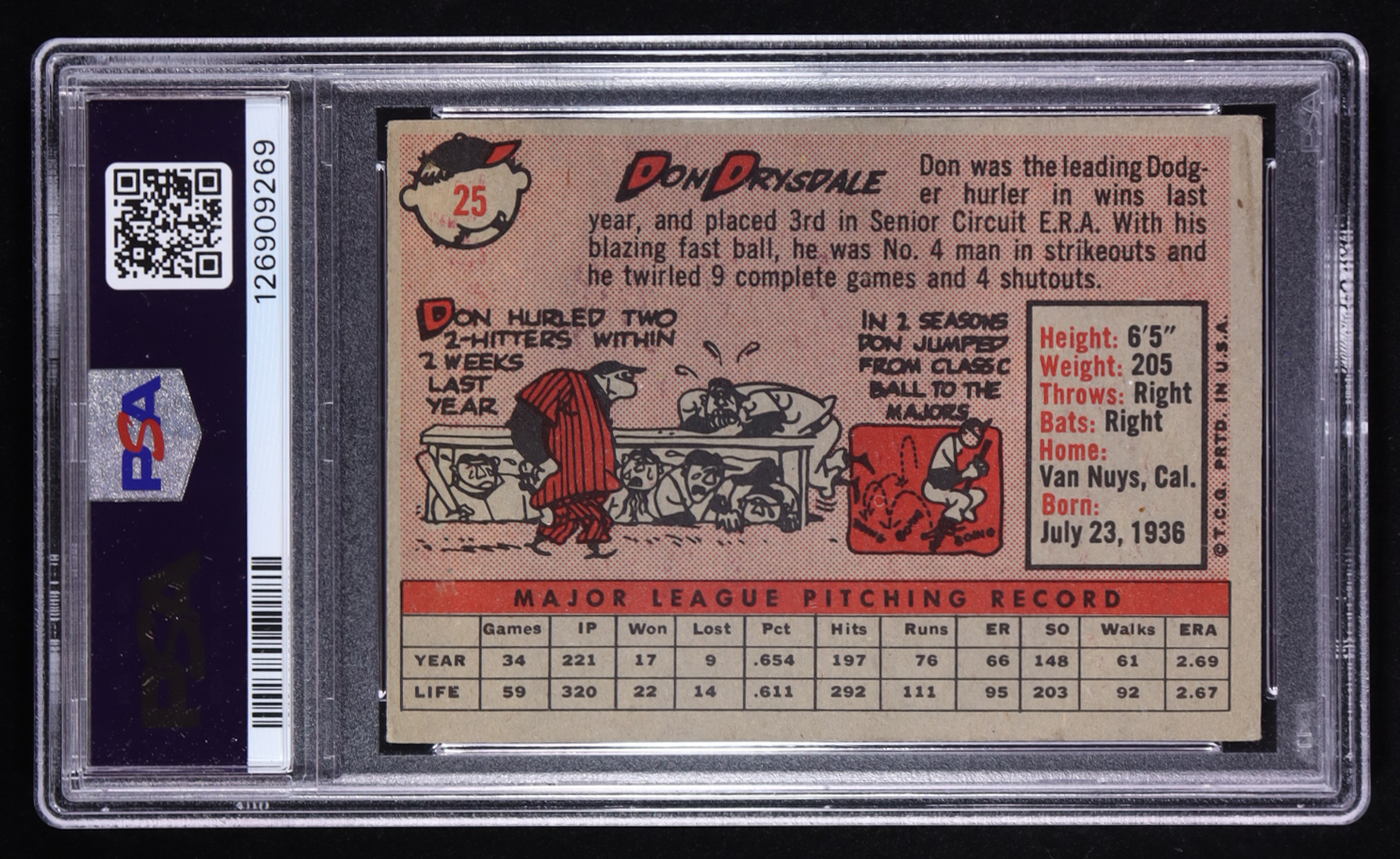 Don Drysdale 1958 Topps #25 (PSA 3)