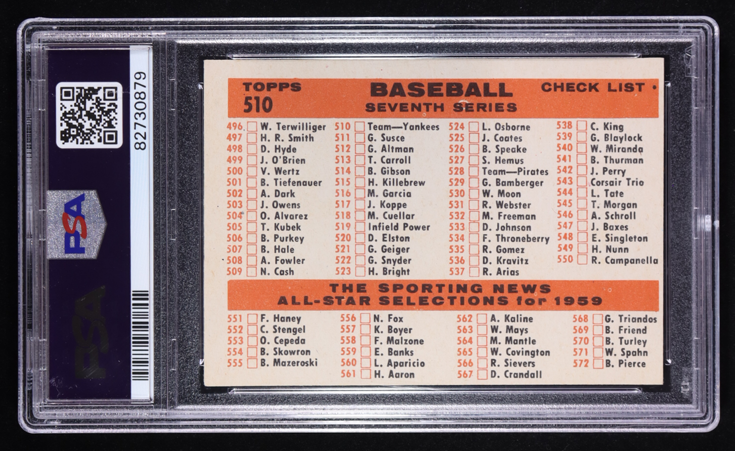 New York Yankees 1959 Topps #510 CL (PSA 5)