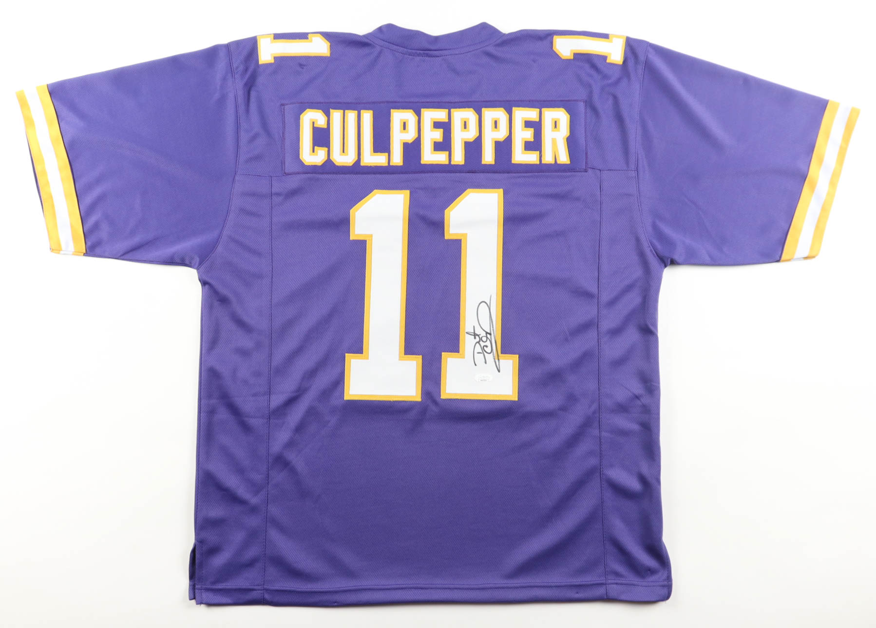 Custom jersey. Everything is sewn on, size XL. Has been hand-signed by Daunte Culpepper.