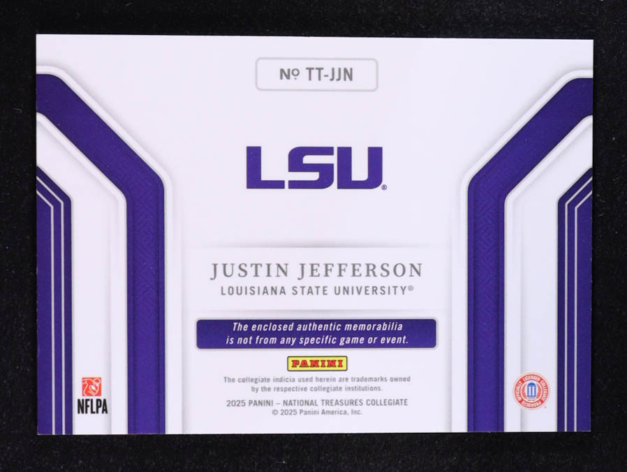 Justin Jefferson 2025 Panini National Treasures Collegiate Tremendous Treasures #11 #21/25