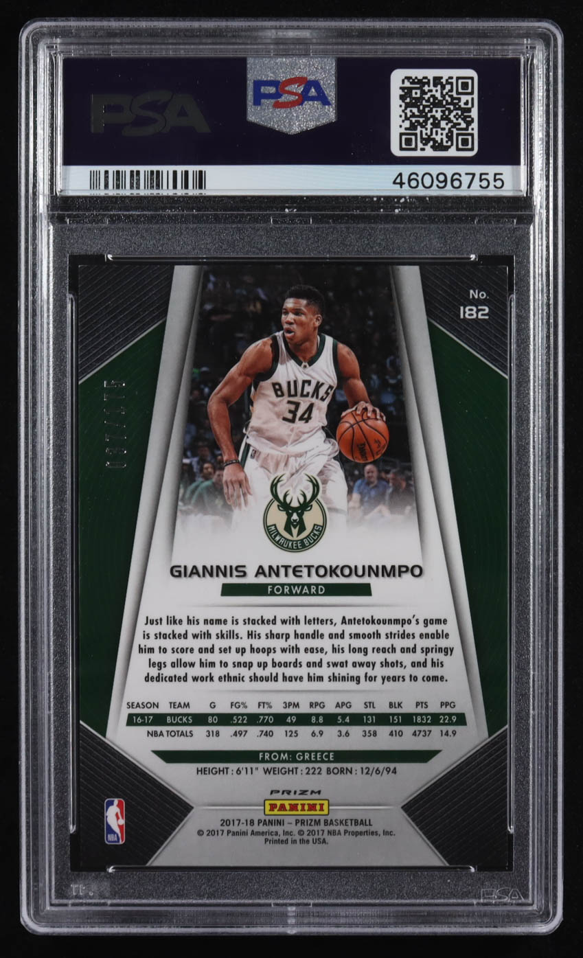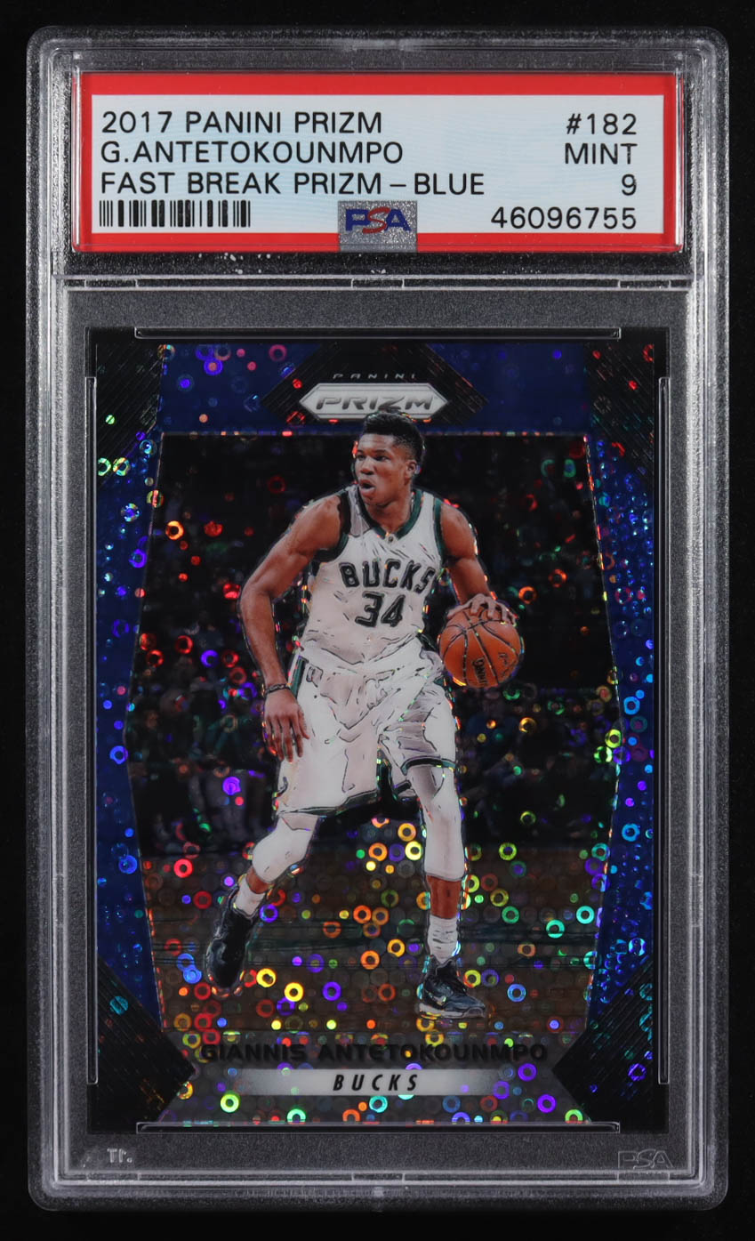 Giannis Antetokounmpo 2017-18 Panini Prizm Prizms Fast Break Blue #182 #037/175 (PSA 9)