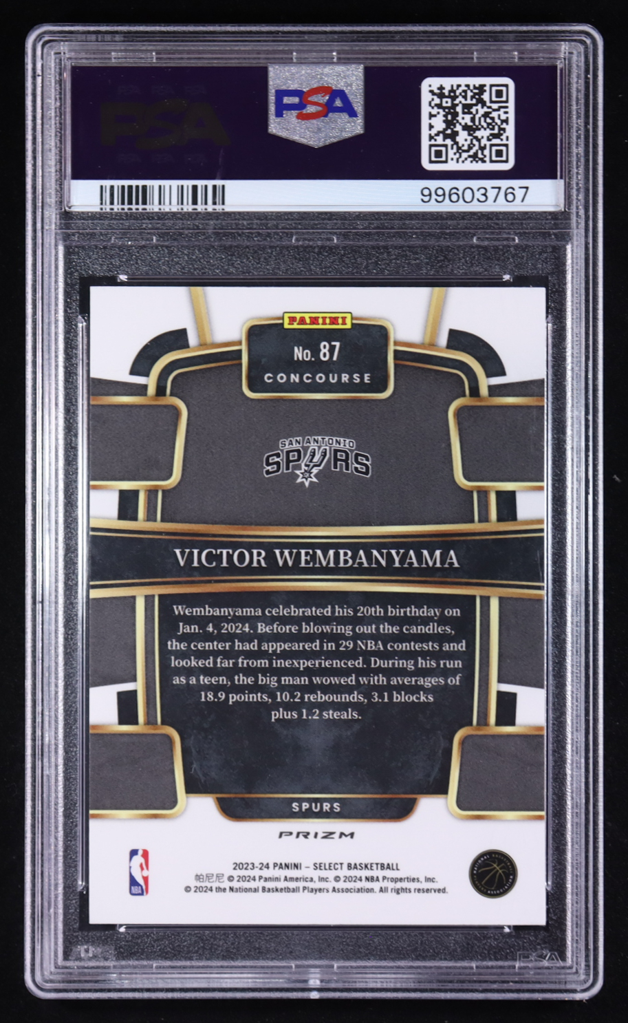 Victor Wembanyama 2023-24 Select Prizms Blue Cracked Ice #87 RC (PSA 10)
