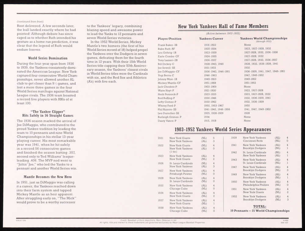 1952 Yankees Commemorative Patch Display