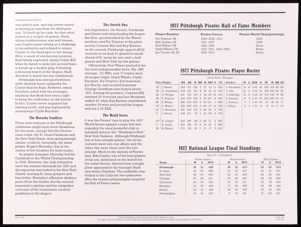 1927 Pirates Commemorative Patch Display