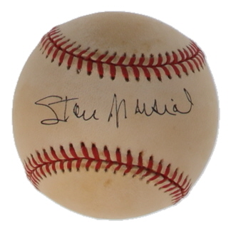 Rawlings Official National League baseball has been hand-signed by Stan Musial (D.2013, St. Louis Cardinals, HOF). Please note, the baseball is naturally toned and stained throughout.