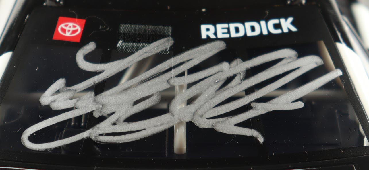 NASCAR die-cast car has been hand-signed on the windshield by Tyler Reddick.