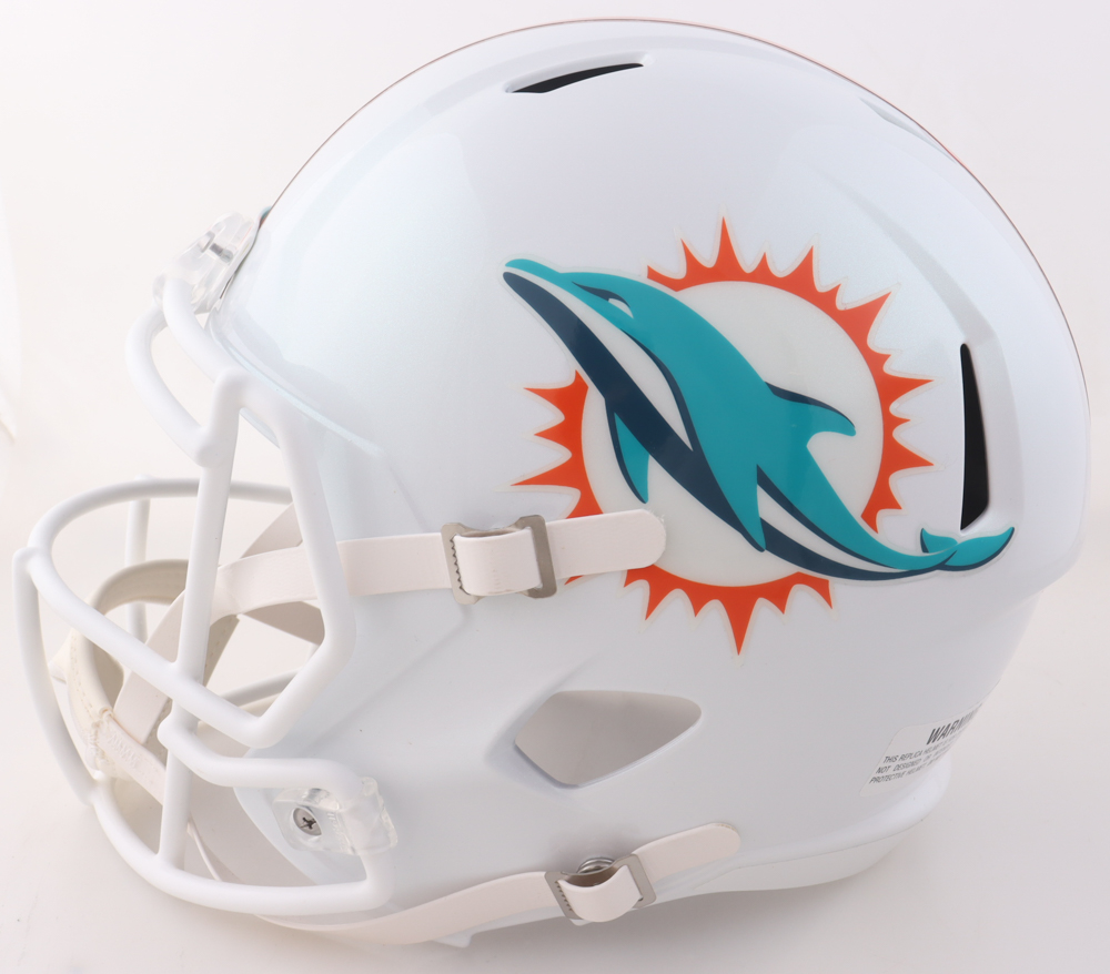 Riddell Miami Dolphins full-size replica Speed helmet. Hand-signed by Tua Tagovailoa and Jaylen Waddle.