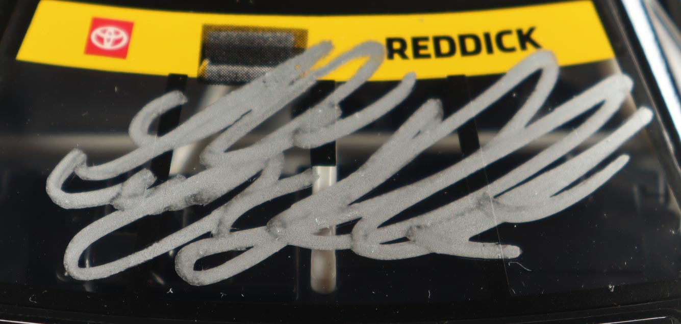 NASCAR die-cast car has been hand-signed on the windshield by Tyler Reddick.