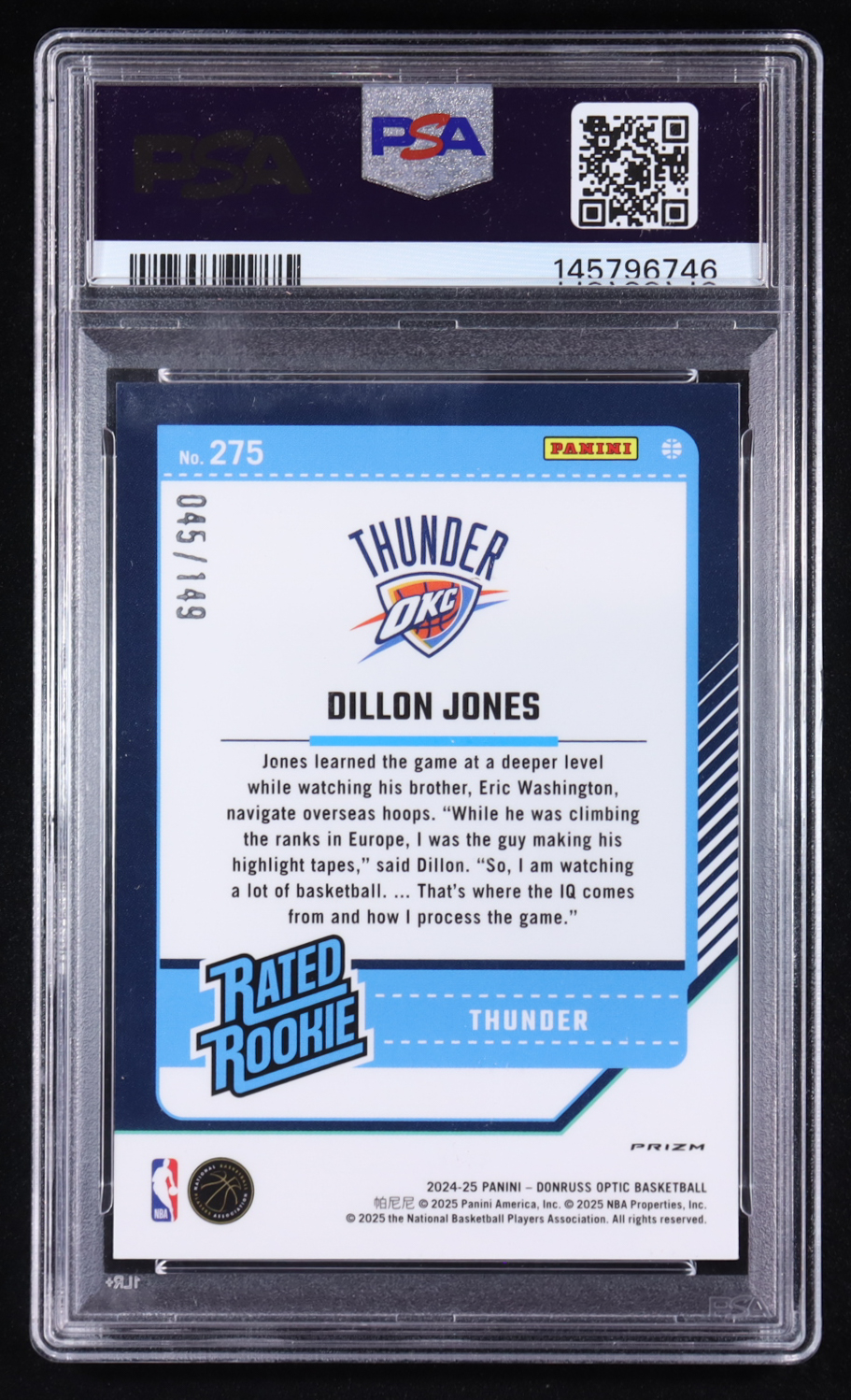 Dillon Jones 2024-25 Donruss Optic Lime Green #275 #045/149 RC (PSA 10)