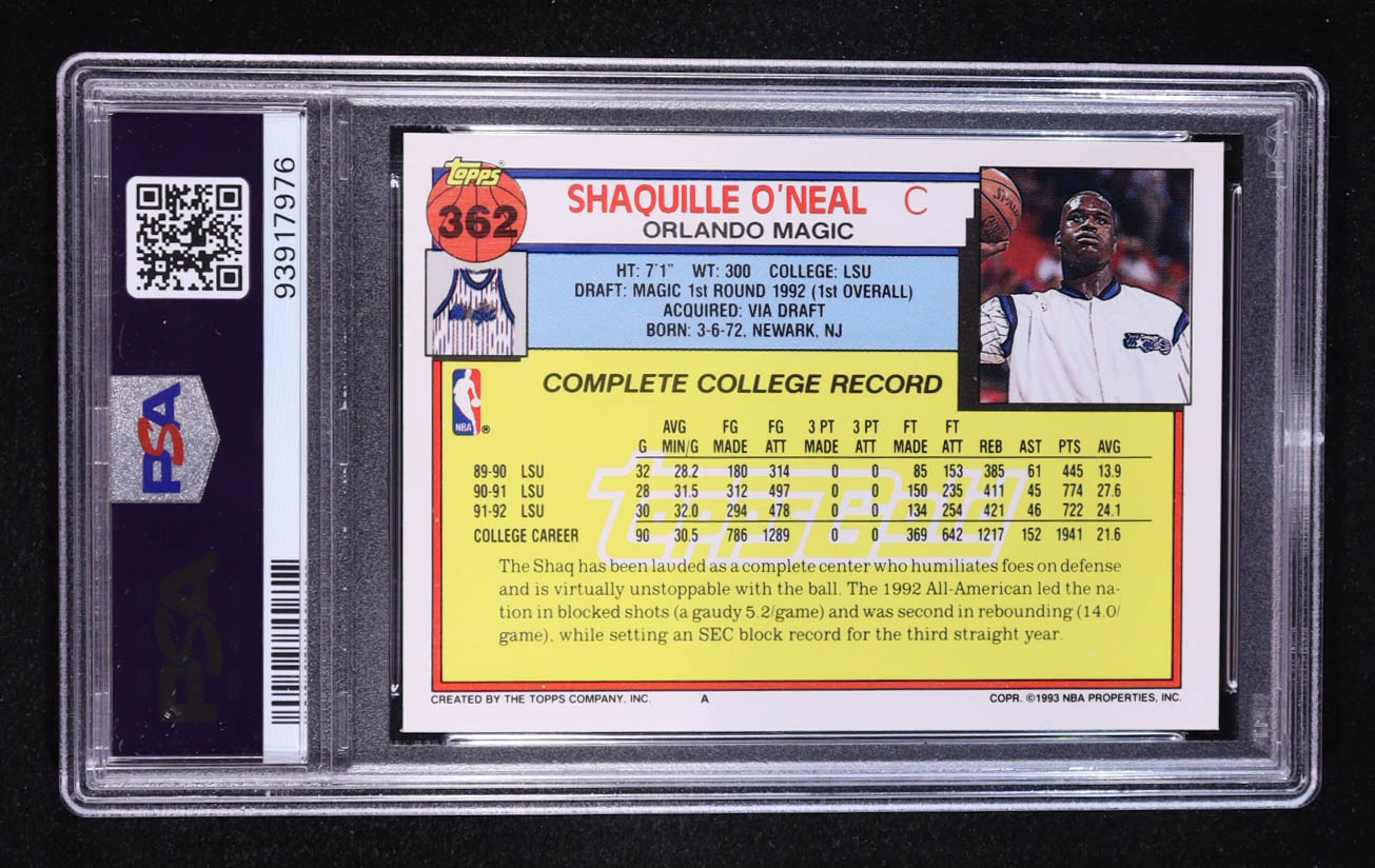 Shaquille O'Neal 1992 Topps Gold #362 RC (PSA 7)