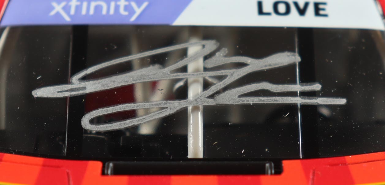 NASCAR die-cast car has been hand-signed on the windshield by Jesse Love.