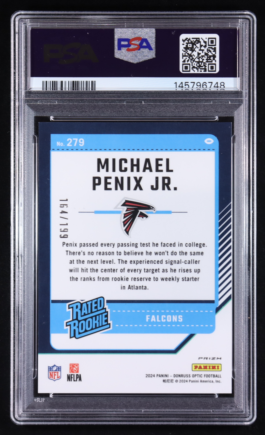 Michael Penix Jr. 2024 Donruss Optic Blue #279 #164/199 RC (PSA 8)