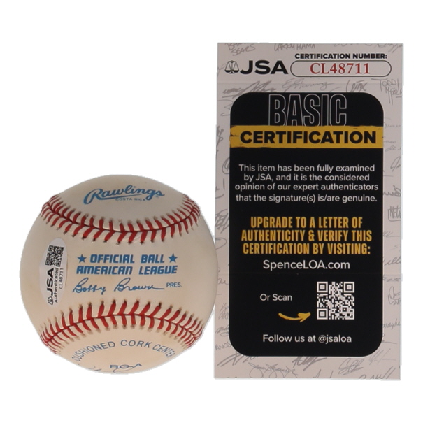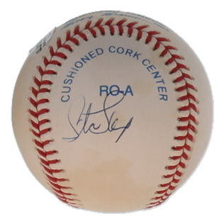 Rawlings Official American League baseball has been hand-signed twice by Steve Sax (Los Angeles Dodgers). Please note, the ball is naturally toned and stained throughout.