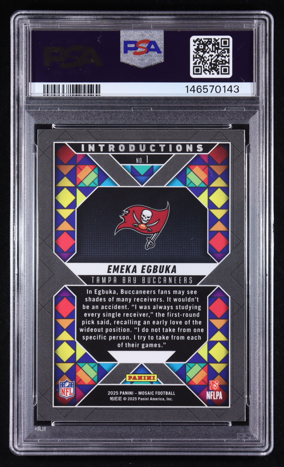 Emeka Egbuka 2025 Panini Mosaic Introductions #1 RC (PSA 9)
