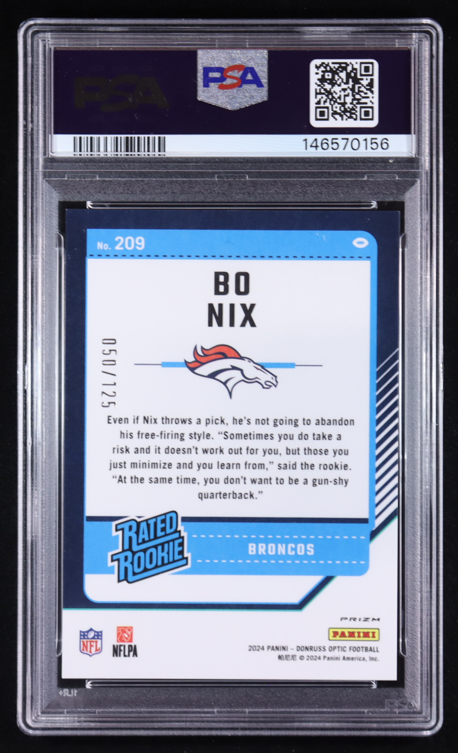 Bo Nix 2024 Donruss Optic Red #209 #050/125 RC (PSA 8)