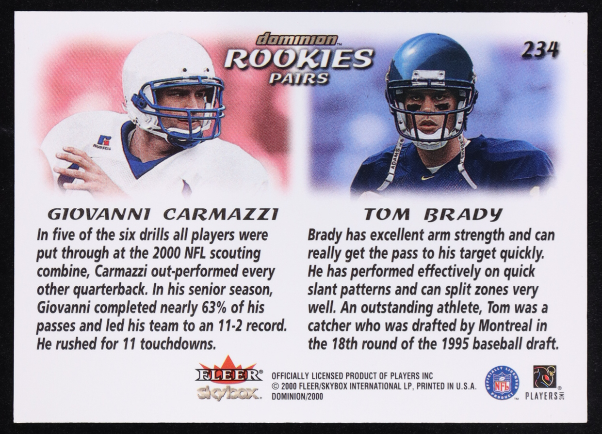 Tom Brady / Giovanni Carmazzi 2000 SkyBox Dominion #234 RC
