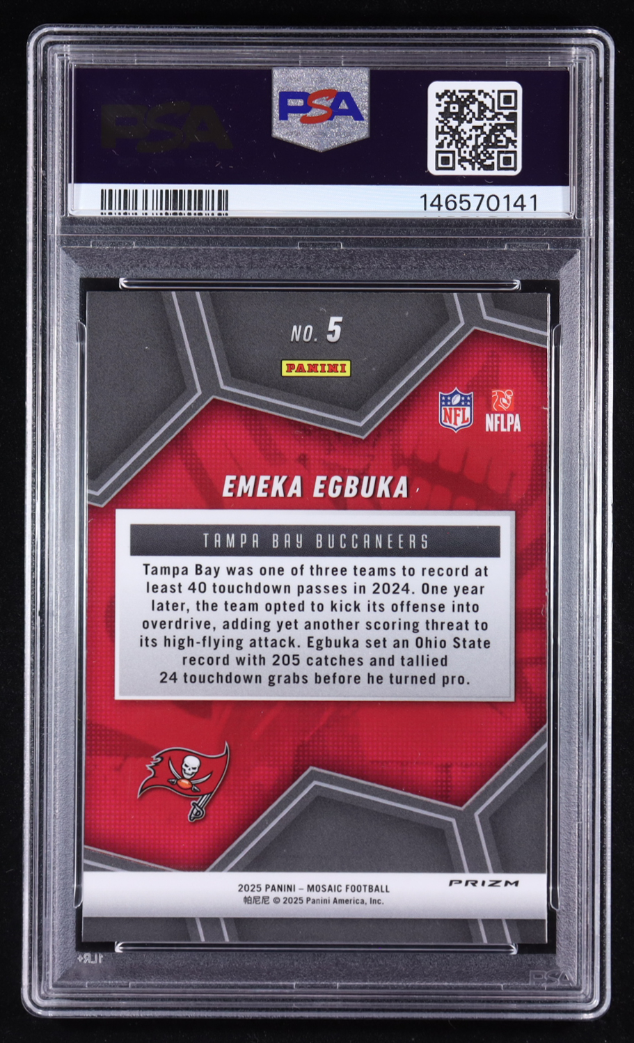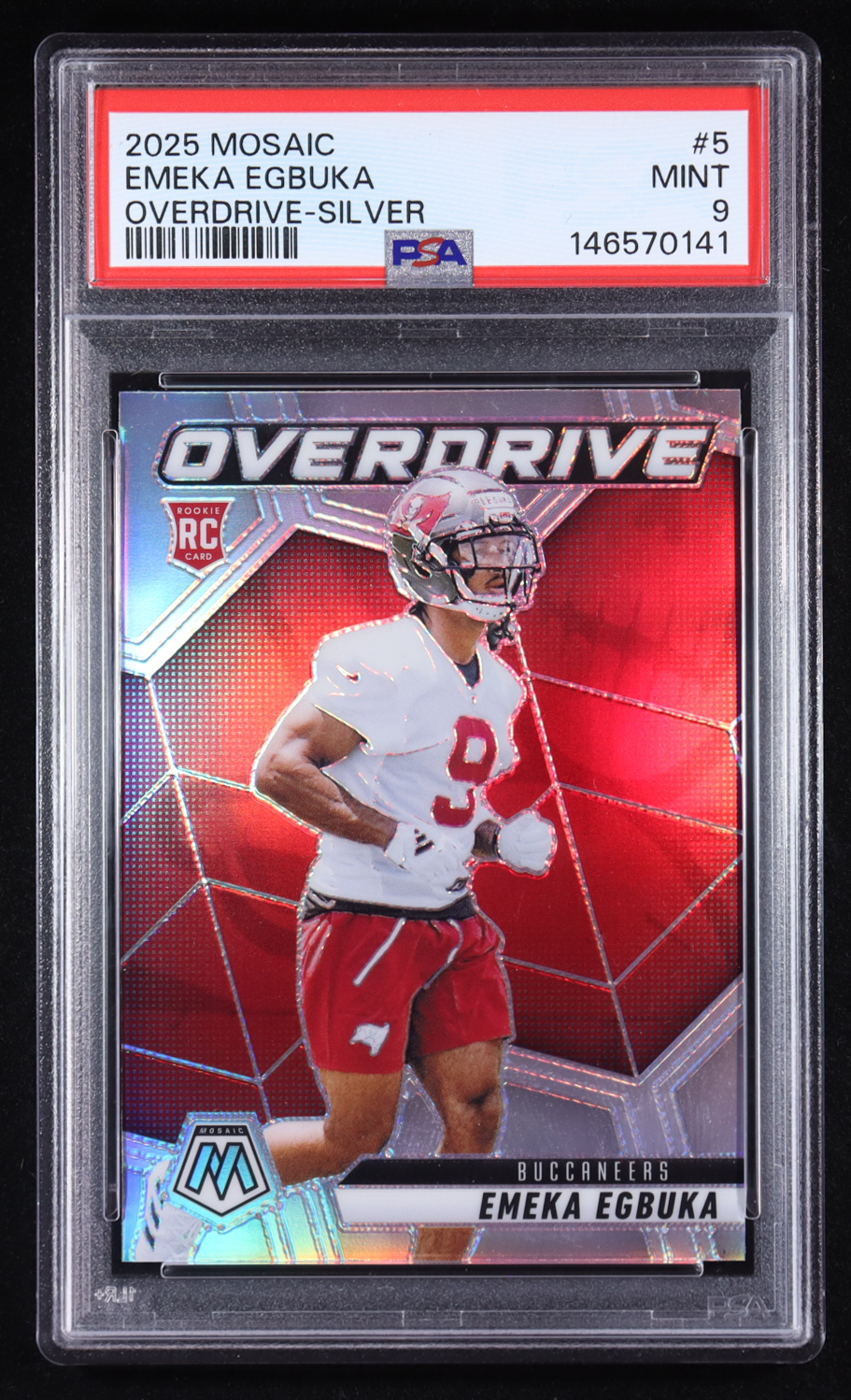 Emeka Egbuka 2025 Panini Mosaic Overdrive Silver #5 RC (PSA 9)