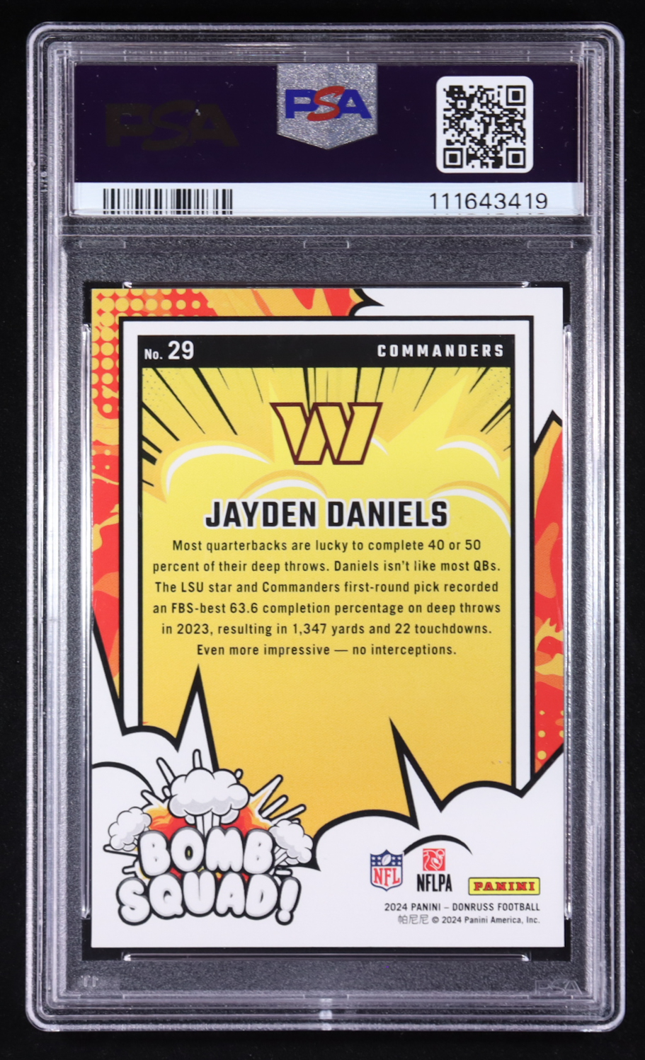 Jayden Daniels 2024 Donruss Bomb Squad #29 RC (PSA 10)