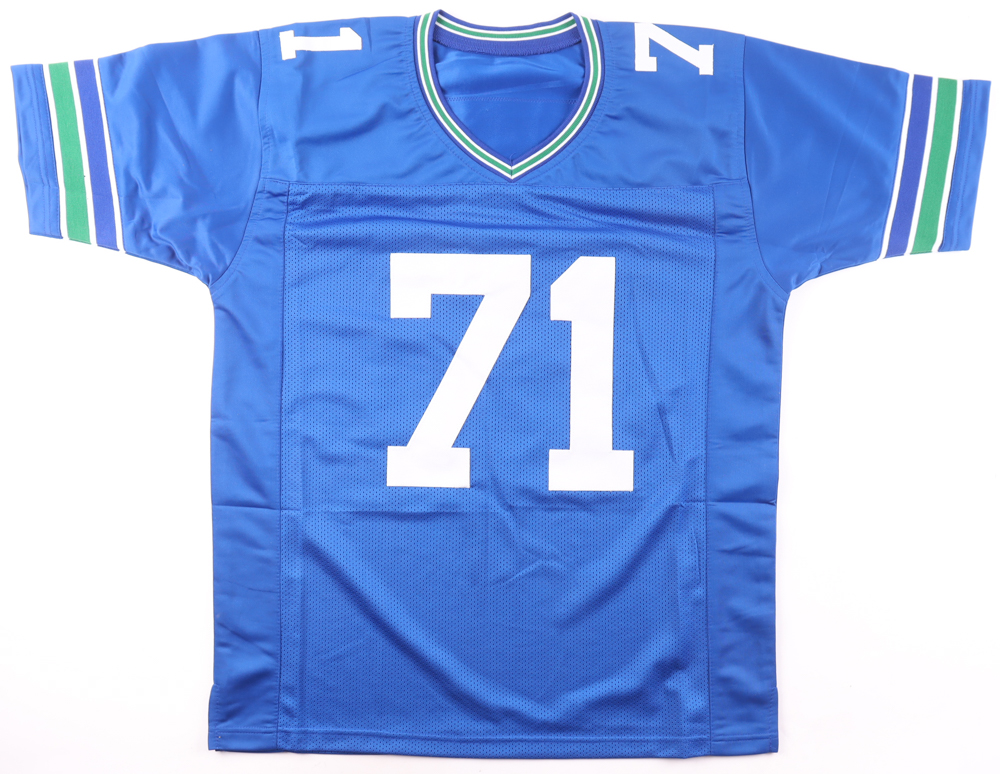 Custom jersey. Everything is sewn on, size XL. Hand-signed by Walter Jones (HOF).