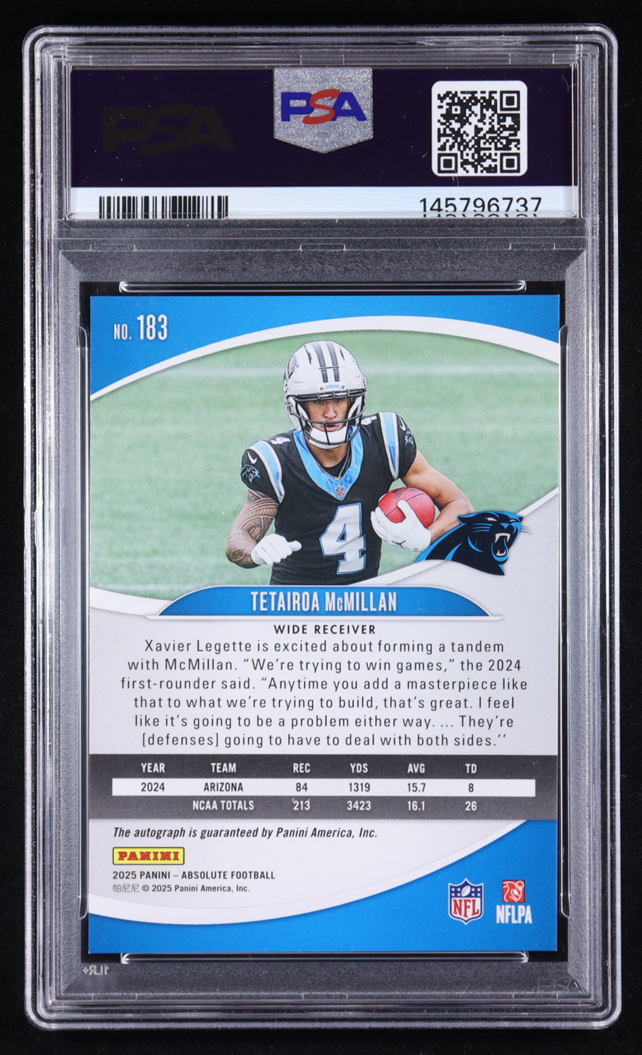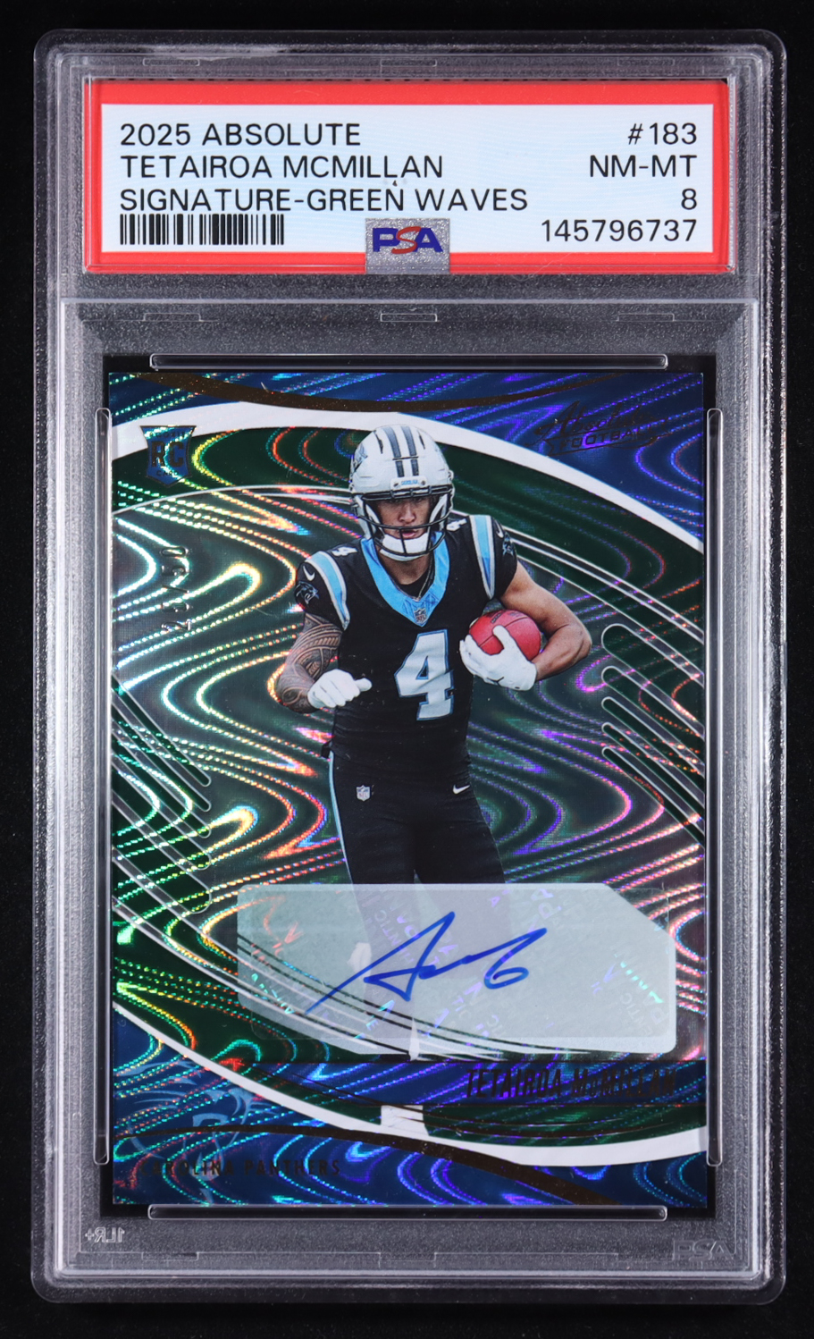 Tetairoa McMillan 2025 Absolute Signatures Green Waves #183 #25/50 RC (PSA 8)