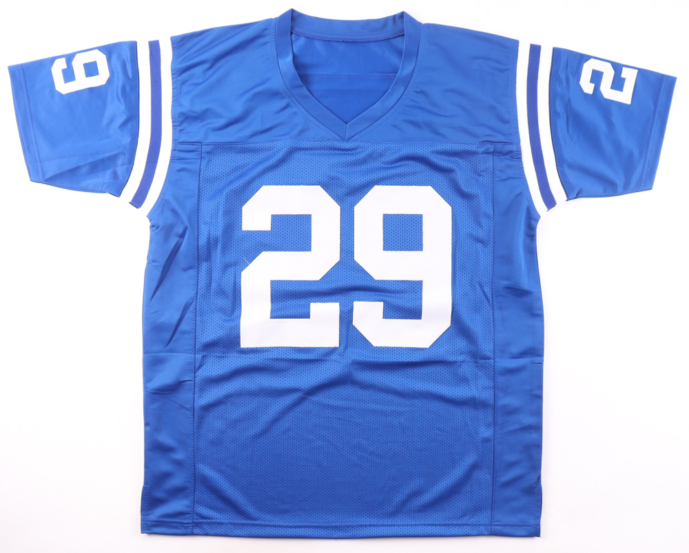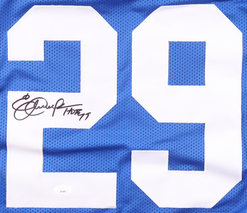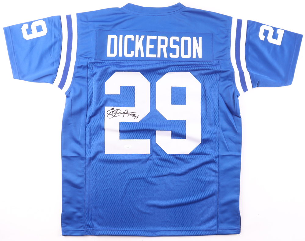 Custom jersey with everything sewn on, size XL. Has been hand-signed and inscribed by Eric Dickerson (HOF).
